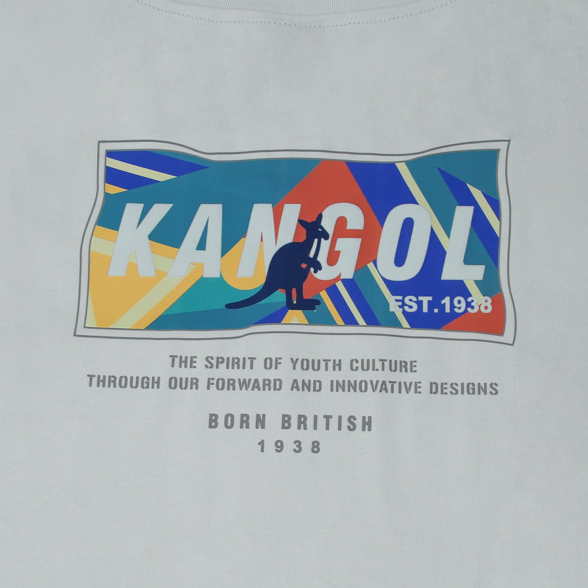 Chiếc áo thun Kangol phối màu Grey White mang đến một sự kết hợp hài hòa giữa sự đơn giản và nổi bật. Mặt trước giữ nét tối giản với logo kangaroo nhỏ in trên ngực trái, như một lời chào thương hiệu nhẹ nhàng và tinh tế. Tuy nhiên, điểm nhấn thực sự nằm ở mặt sau – nơi hội tụ của những mảng màu phối sắc sảo, kết hợp cùng typography hiện đại và dòng chữ “Born British”.