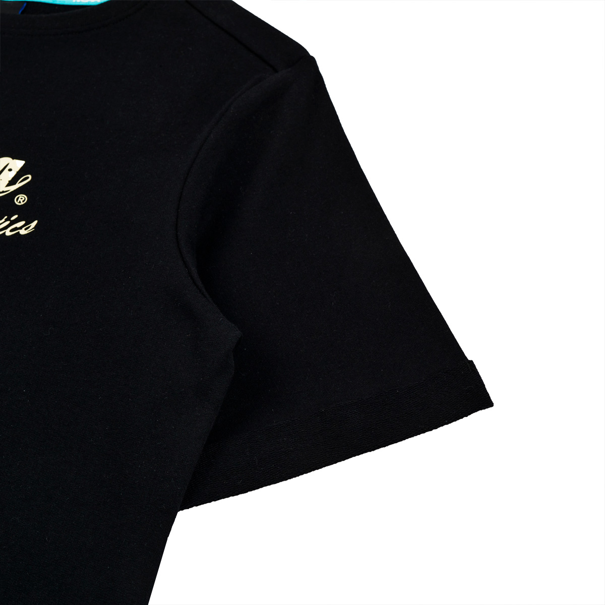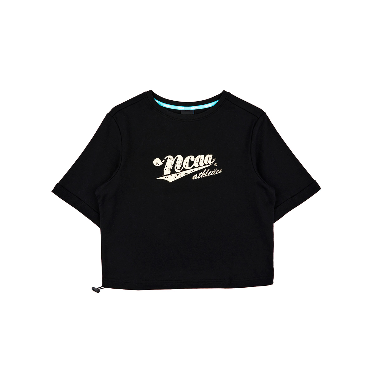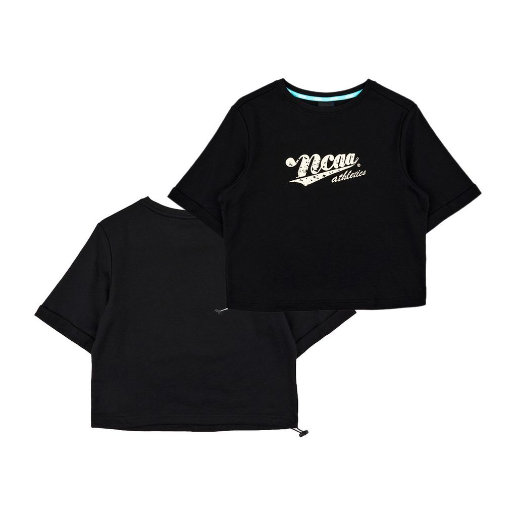 "Áo thun nữ NCAA họa tiết cổ điển tay ngắn màu đen