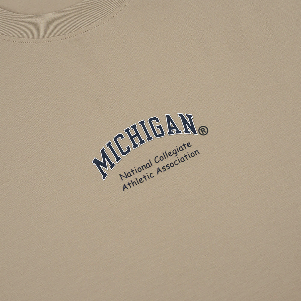Áo thun của NCAA với chất liệu 95% Cotton và 5% Spandex là sự kết hợp hoàn hảo giữa sự thoải mái và tính co giãn. Màu sắc trung tính tạo nên phong cách trang nhã và dễ dàng phối hợp với nhiều loại trang phục khác nhau. Thiết kế phía trước áo có in chữ ""MICHIGAN"" với phong cách cổ điển, kèm theo dòng chữ ""NCAA Licensed Collegiate Athletic Association"" bên dưới, tạo điểm nhấn nổi bật và thể hiện sự tự hào về thương hiệu. Phần lai áo có logo nhỏ của trường đại học Michigan với chữ ""M"" màu vàng trên nền đen, tăng thêm tính nhận diện và điểm nhấn cho sản phẩm. Cổ áo tròn và tay áo ngắn đơn giản, mang lại sự thoải mái và dễ chịu cho người mặc. Phía sau lưng áo được trang trí bằng họa tiết lớn thể hiện tinh thần thể thao nổi bật, tạo nên phong cách năng động và mạnh mẽ. Áo thun của NCAA không chỉ phù hợp cho các hoạt động thường ngày mà còn là lựa chọn lý tưởng cho các buổi tập luyện nhẹ nhàng hay dạo phố. Với chất liệu cao cấp và thiết kế tinh tế, áo mang đến sự thoải mái tối đa cùng với phong cách thể thao trẻ trung và năng động.