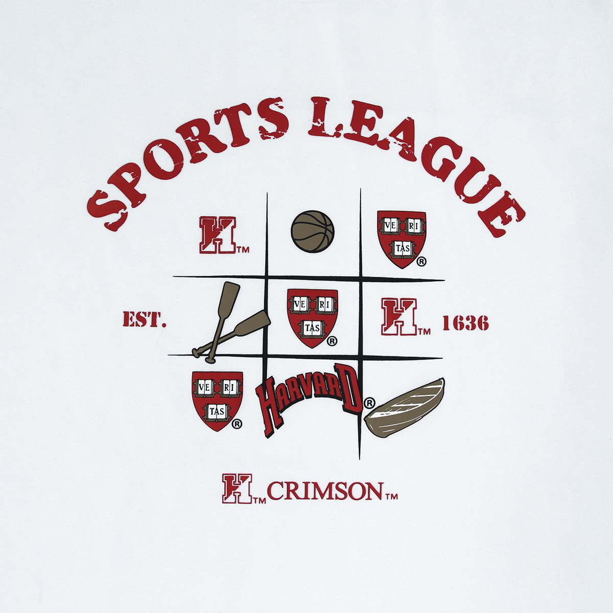 - Bên trong các ô là những biểu tượng gắn liền với tinh thần học đường: gậy bóng chày, mặt nạ kịch nghệ, quả bóng, logo Harvard và cờ hiệu “CRIMSON”.
