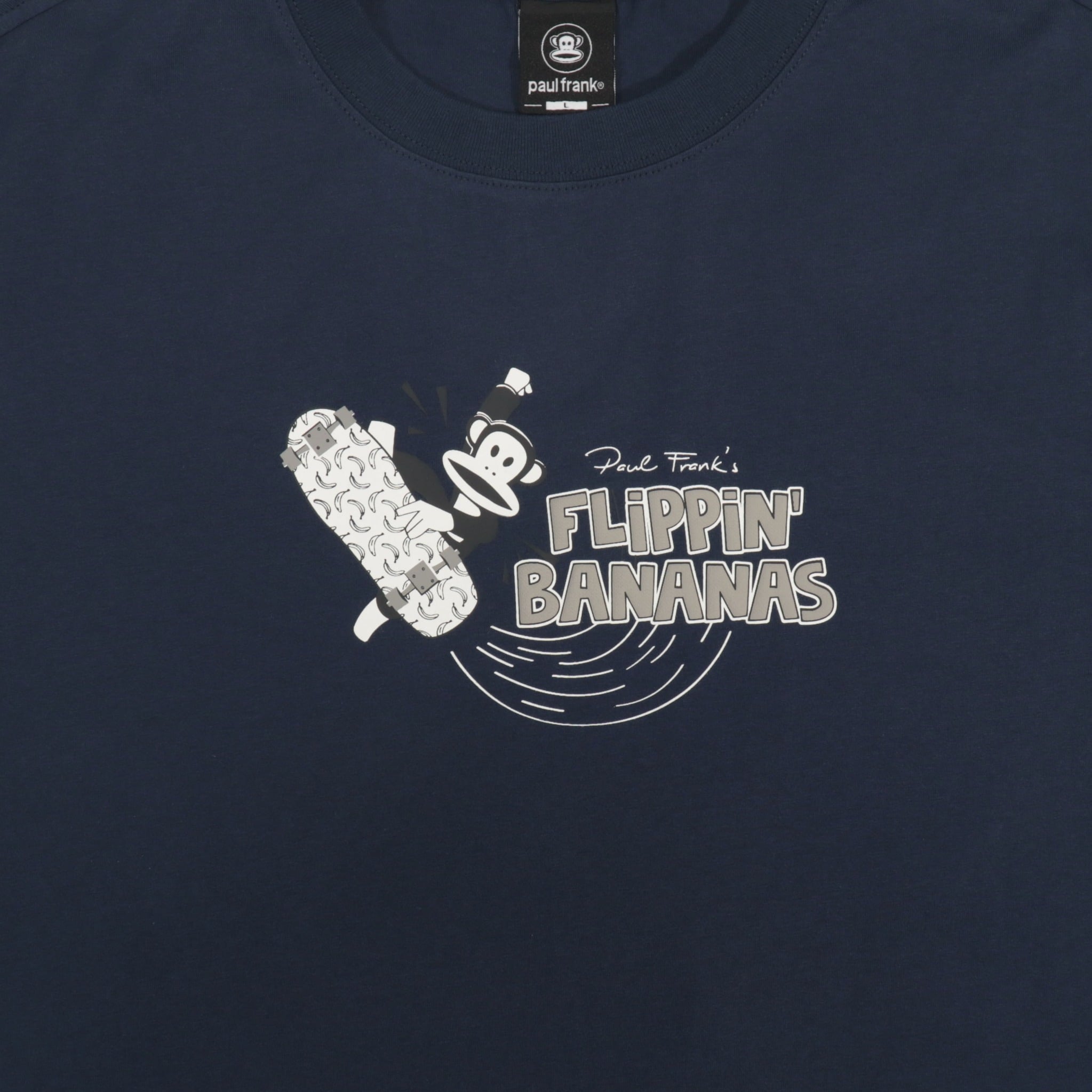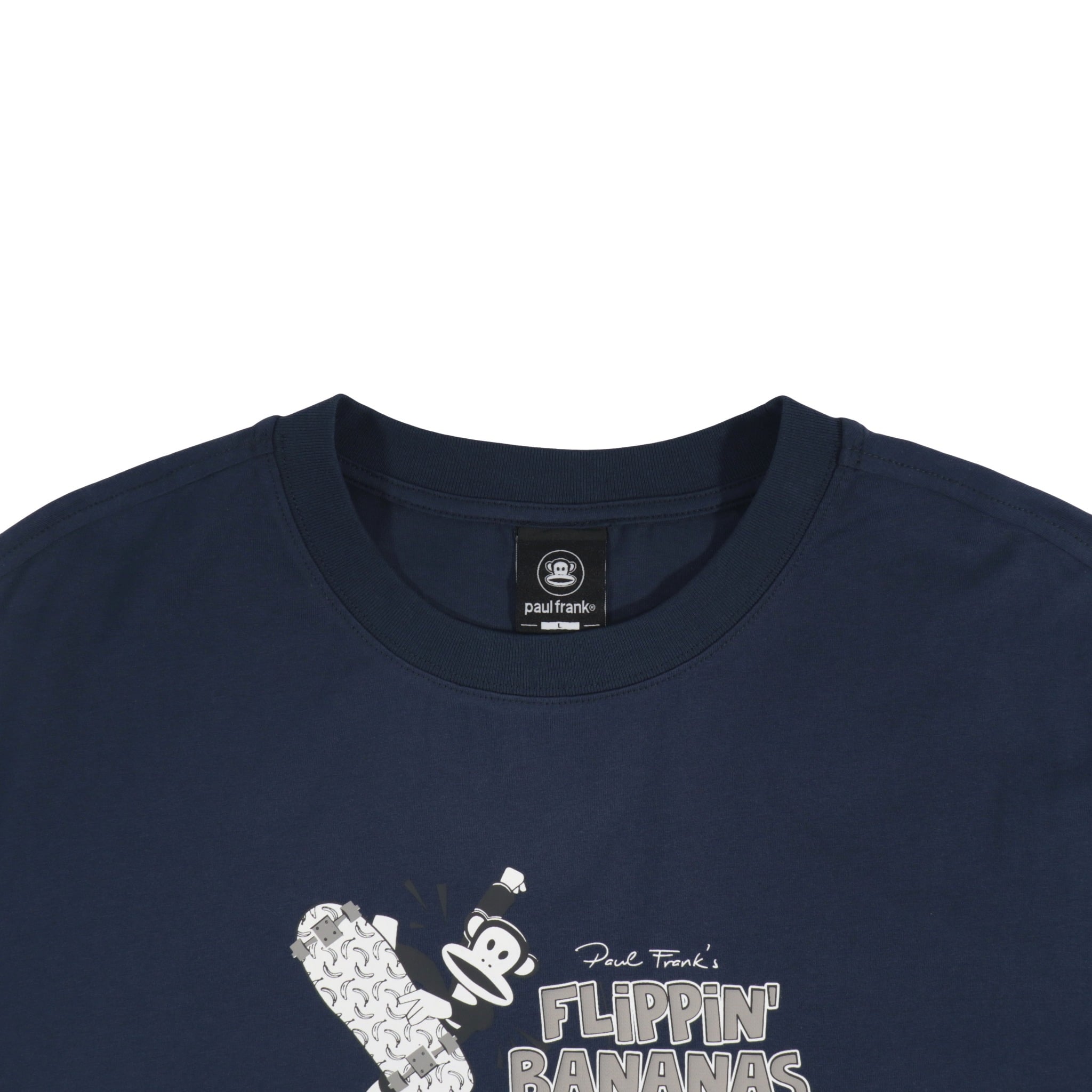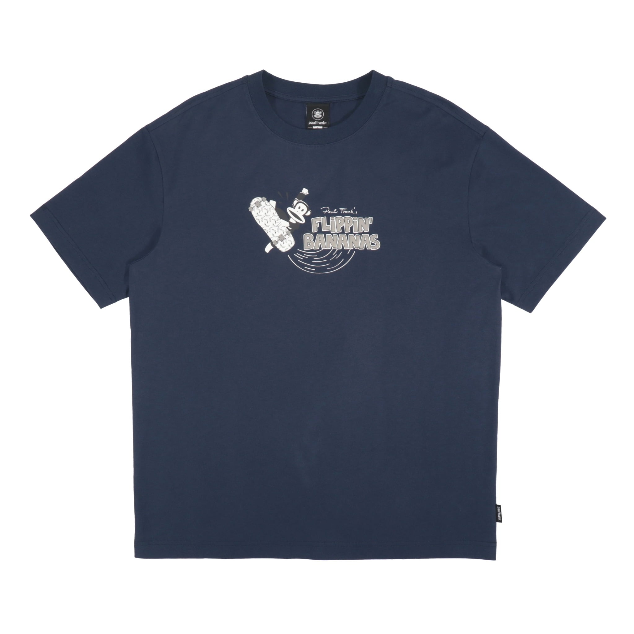 Mặt trước áo nổi bật với hình chú khỉ Julius dễ thương – biểu tượng đặc trưng của Paul Frank – được ứng dụng công nghệ in nổi ép nhiệt hiện đại. Nhờ đó, họa tiết trở nên rõ nét, bền màu và giữ được vẻ sinh động ngay cả sau nhiều lần giặt.