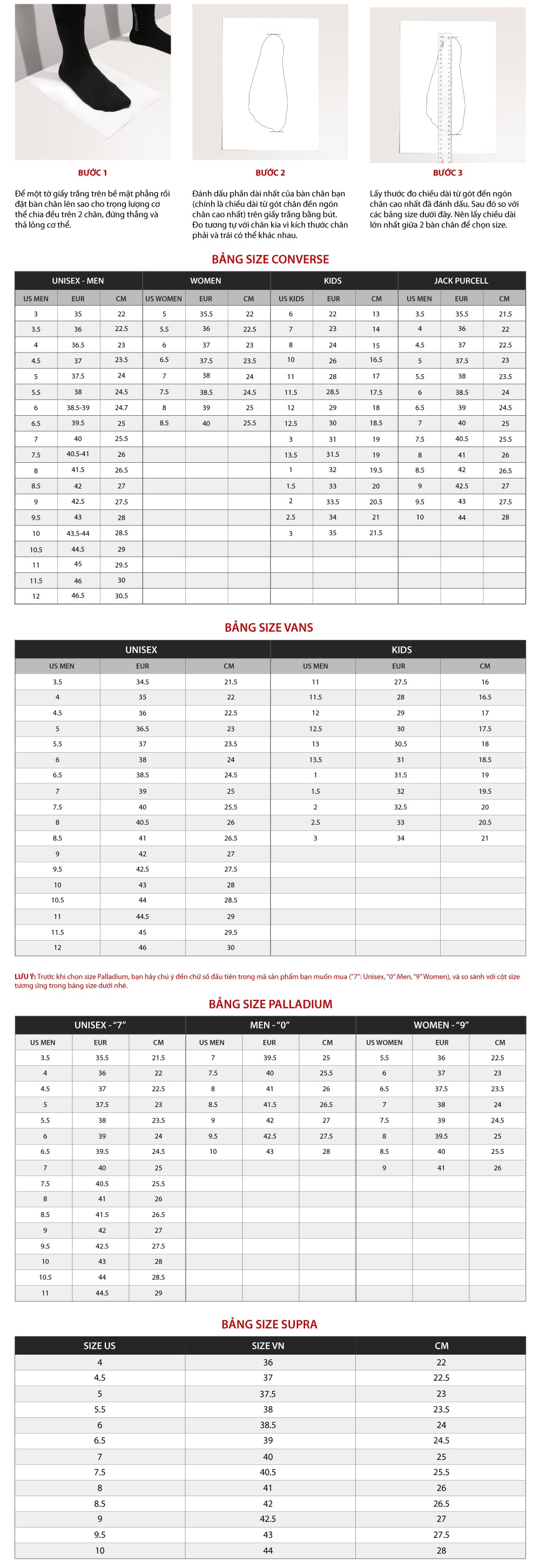Cam kết sản phẩm chính hãng đến từ Converse, Vans, Palladium.