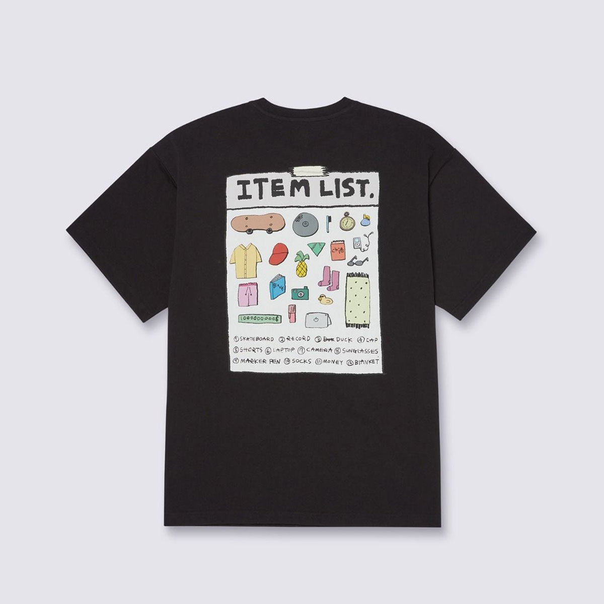 ITEM LIST SS TEE nằm trong bộ sưu tập đặc biệt năm 2025 thuộc VANS ARTIST COLLECTION, đánh dấu sự hợp tác sáng tạo giữa Vans và nghệ sĩ Hàn Quốc RIROO. Với phong cách minh họa dí dỏm đặc trưng, RIROO mang đến một thiết kế giàu tính kể chuyện, biến mặt lưng áo thành “bảng danh sách vật phẩm” đầy màu sắc, trẻ trung và độc đáo.