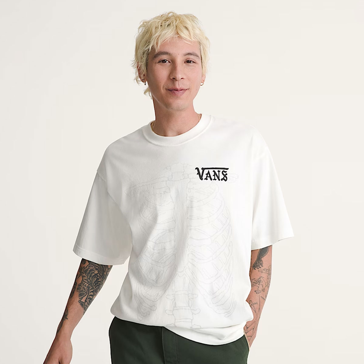 Điểm nhấn nằm ở hình in lụa logo Vans được xử lý sắc nét trên ngực, đảm bảo độ bền màu và hạn chế bong tróc. Thiết kế hai mặt được hoàn thiện gọn gàng, giúp tổng thể áo giữ được tính liền mạch và chắc chắn ở cả hai phía.