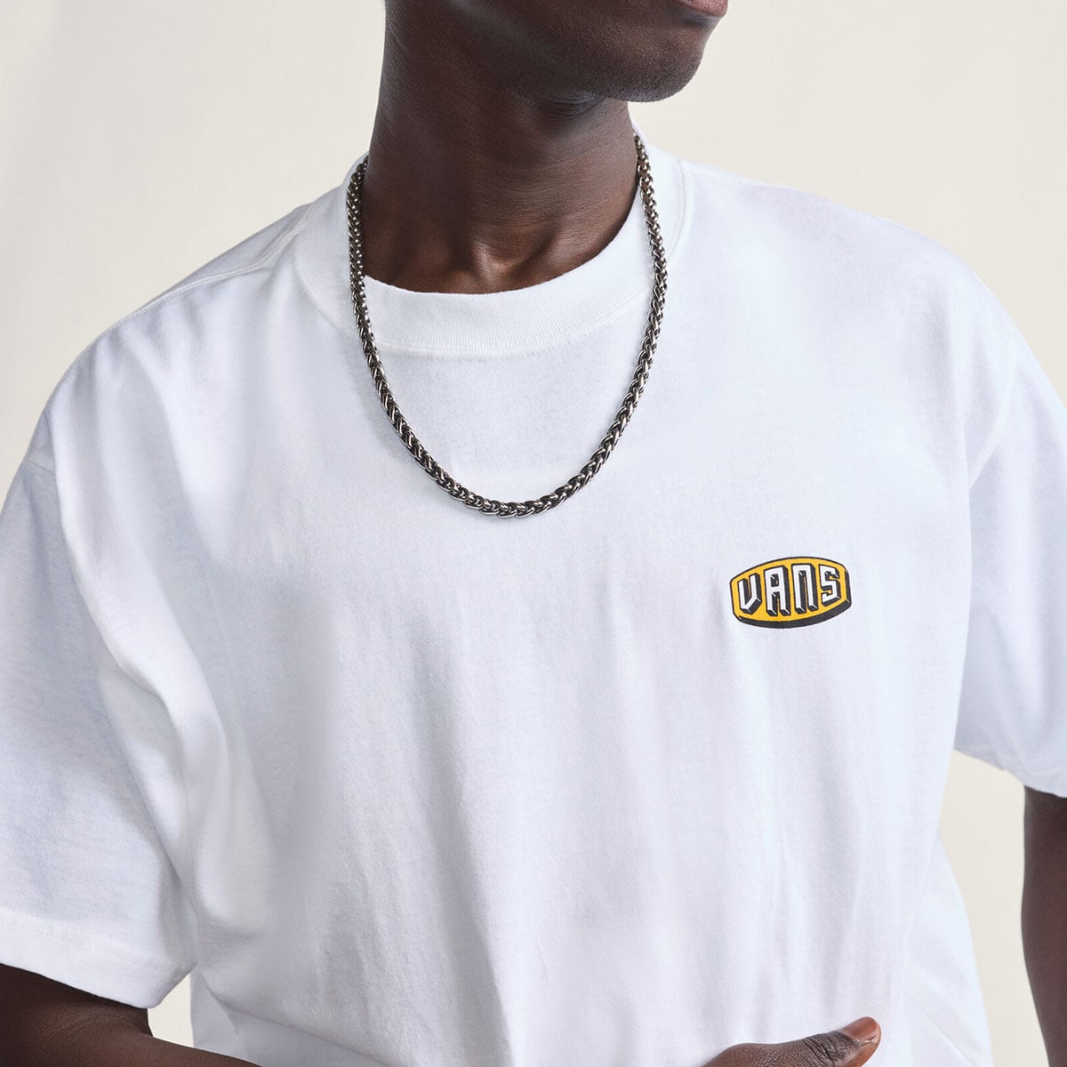 Điểm nhấn của áo nằm ở họa tiết in lụa sắc nét và logo Vans cách điệu ở ngực, tạo điểm nổi bật tinh tế nhưng vẫn giữ được nét tối giản đặc trưng của thương hiệu.