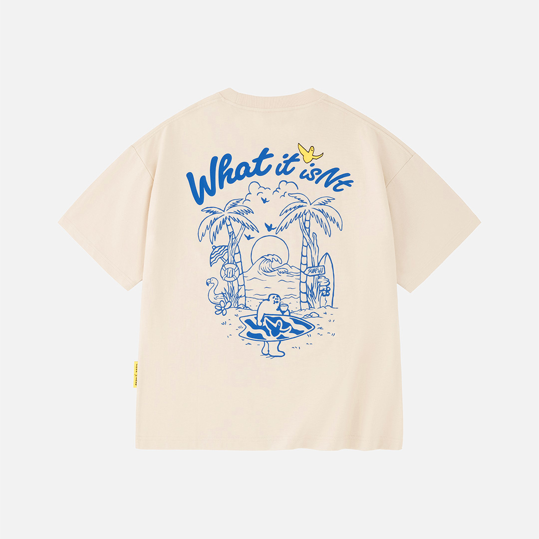 Ý tưởng: Họa tiết được lấy cảm hứng từ khoảnh khắc hoàng hôn trên bãi biển, khi “Fat Man” vừa chinh phục những con sóng và thưởng thức vị ngọt mát lạnh của trái dừa tươi