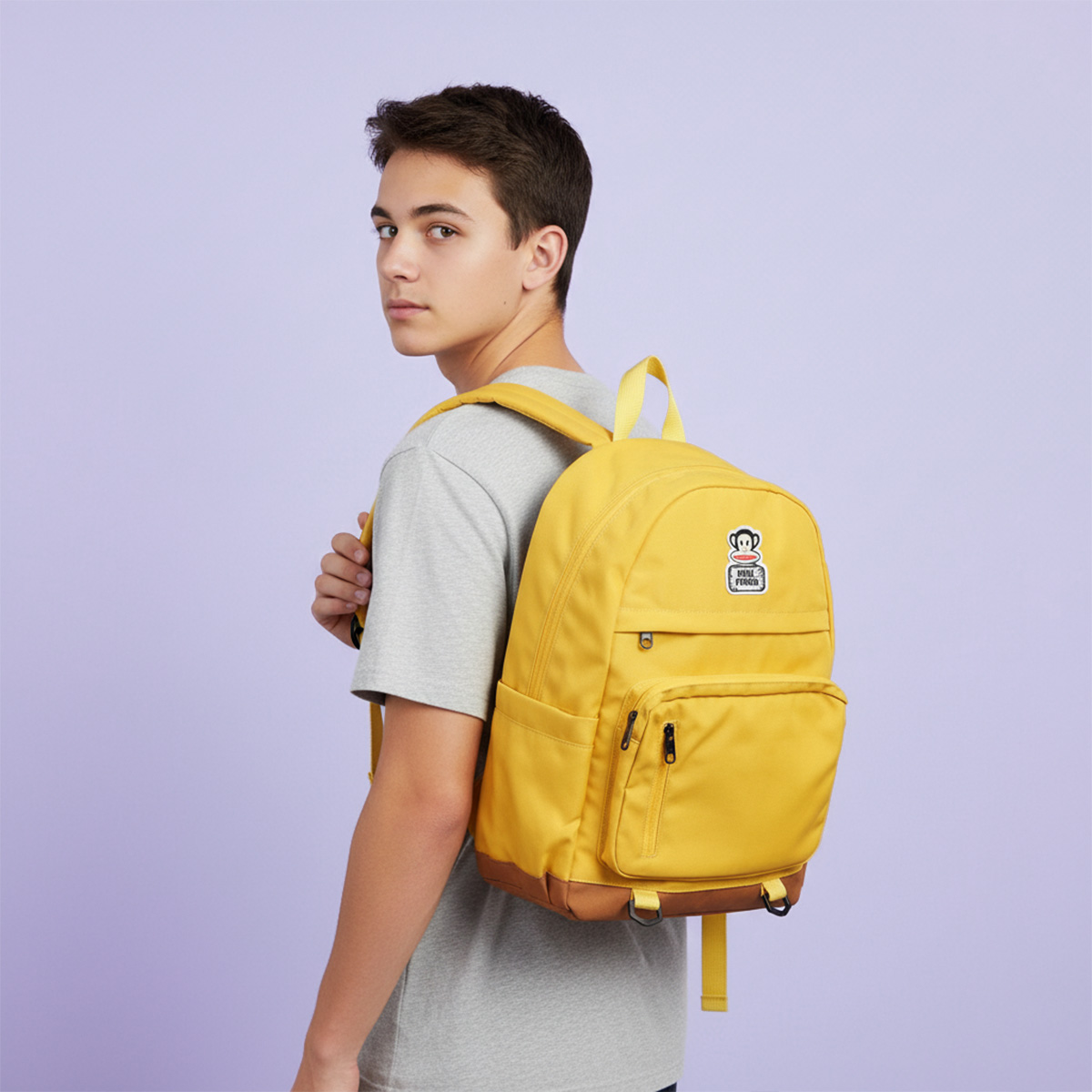 Balo Paul Frank sở hữu form đứng trung bình, ngăn chính rộng rãi cho phép đựng laptop và tài liệu một cách gọn gàng. Bên trong được trang bị ngăn lót riêng, hỗ trợ bảo vệ laptop an toàn và thuận tiện khi lấy ra sử dụng. Dây đeo vai êm ái, có thể điều chỉnh linh hoạt, giúp mang theo thoải mái trong thời gian dài. Logo Paul Frank dạng badge hoặc patch được đặt nổi bật phía trước, tạo điểm nhấn nhận diện thương hiệu.