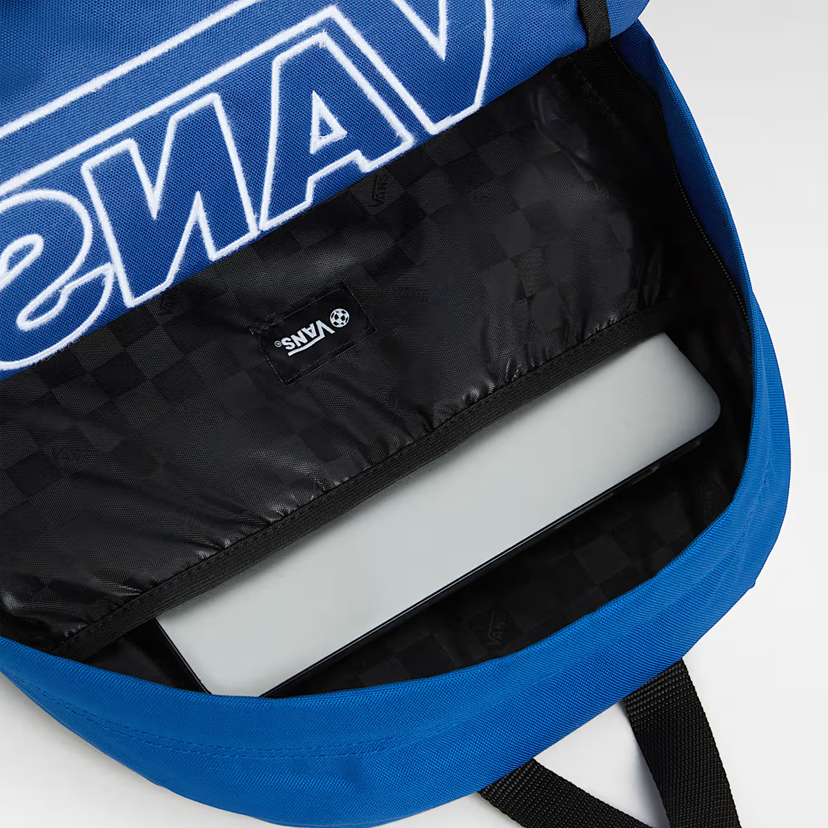 Điểm nhấn đặc trưng của balo chính là logo Vans “Flying V” in nổi bật ở mặt trước – biểu tượng gắn liền với tinh thần Off The Wall. Thêm vào đó, dây đeo vai có đệm giúp mang lại cảm giác thoải mái suốt cả ngày, kể cả khi đeo lâu.