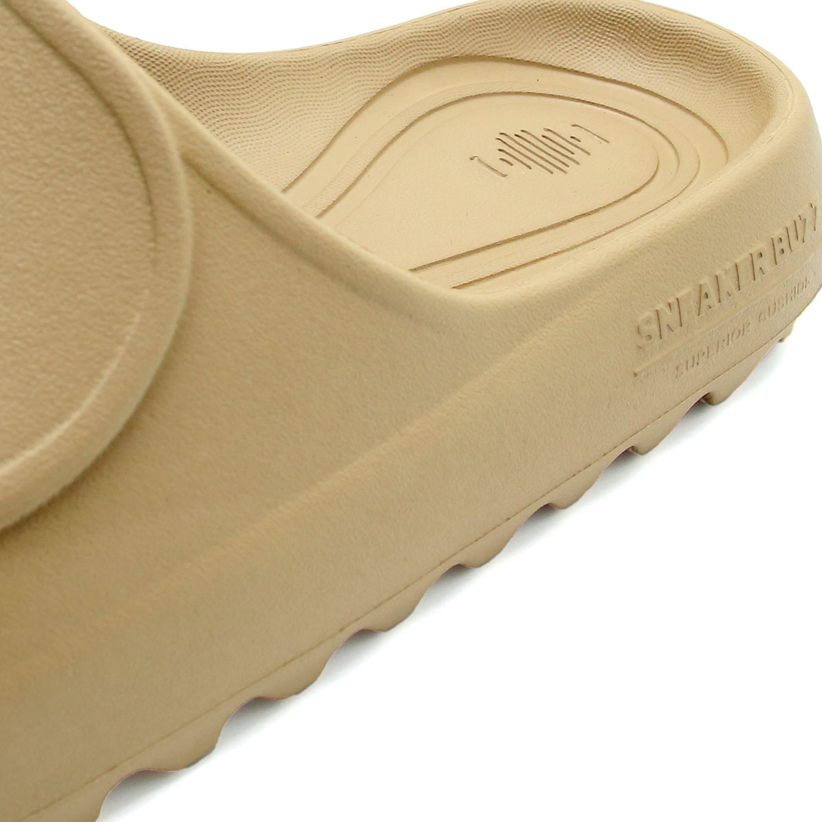 Sử dụng vật liệu và là hạt nhựa cao su EVA cao cấp đàn hồi và được đúc nguyên khối – cùng chất liệu của Yeezy Slide có độ bền cao kết hợp với trọng lượng nhẹ nên người mang có thể sử dụng thoải mái, nhẹ nhàng nhưng vẫn không mất đi tính thời trang và được dễ dàng làm sạch sau mỗi chuyến đi dài.