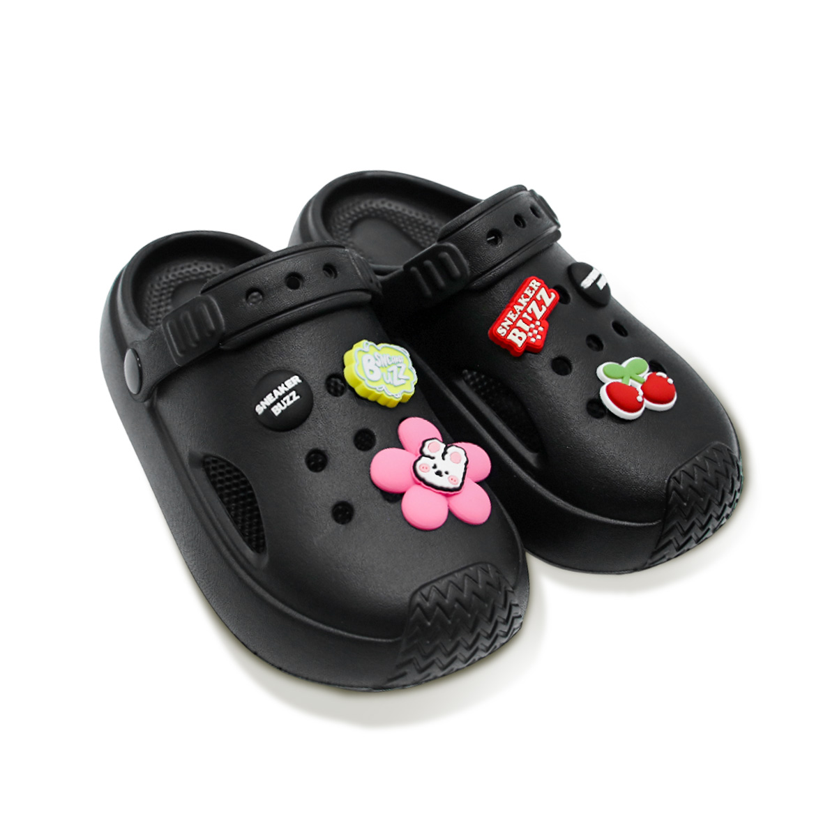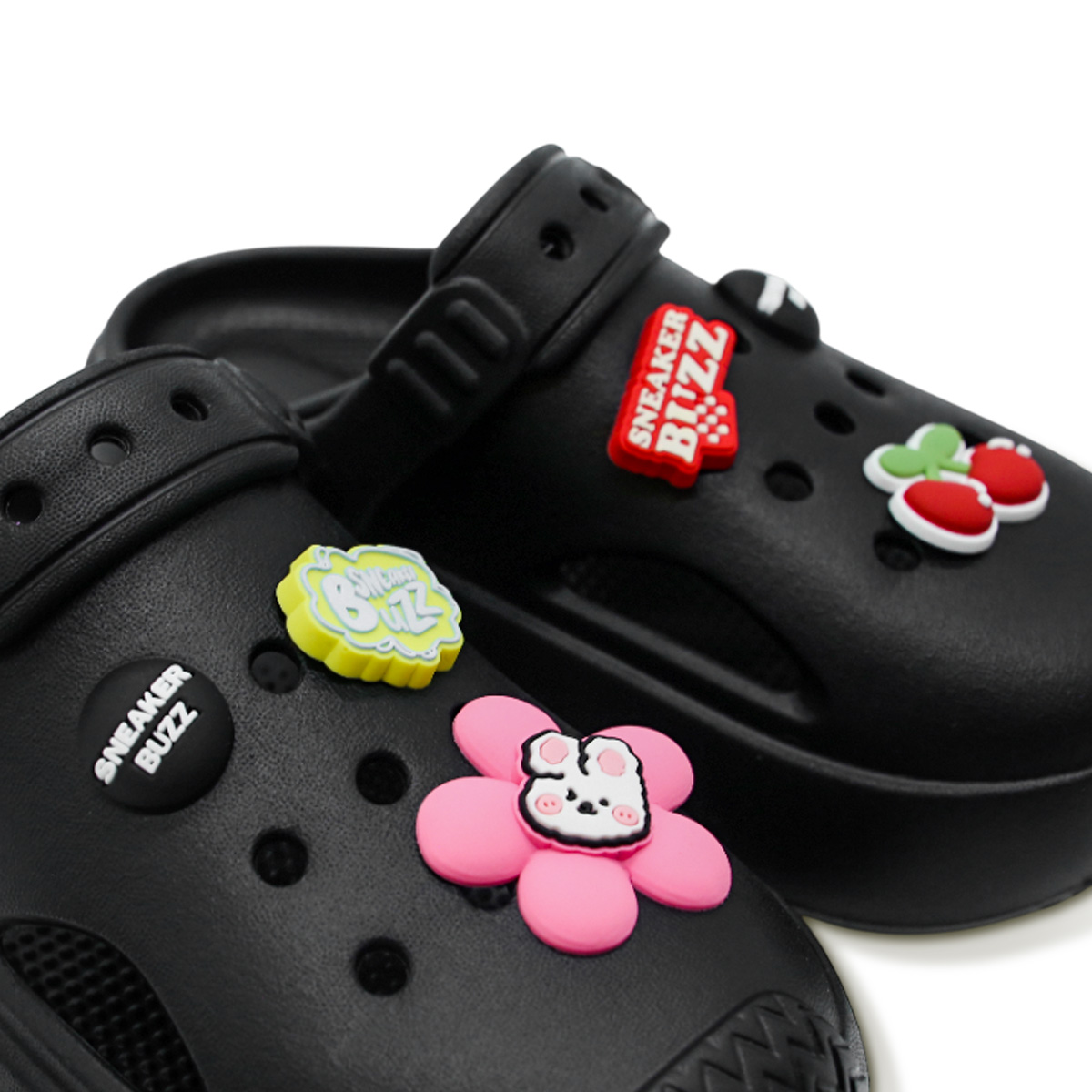 Đôi Clog với logo SNEAKER BUZZ được làm trên những chiếc nút tinh tế có thể tháo rời. Kết cấu phần quai hậu linh hoạt lên xuống và có thể tháo rời. Màu sắc đơn giản, vui tươi phù hợp với mọi lứa tuổi. Kết cấu tổng thể đôi Clog bầu bĩnh, đầy đặn, với phần mũi được bộc lại các đầu ngón chân và có lỗ thoáng khí.