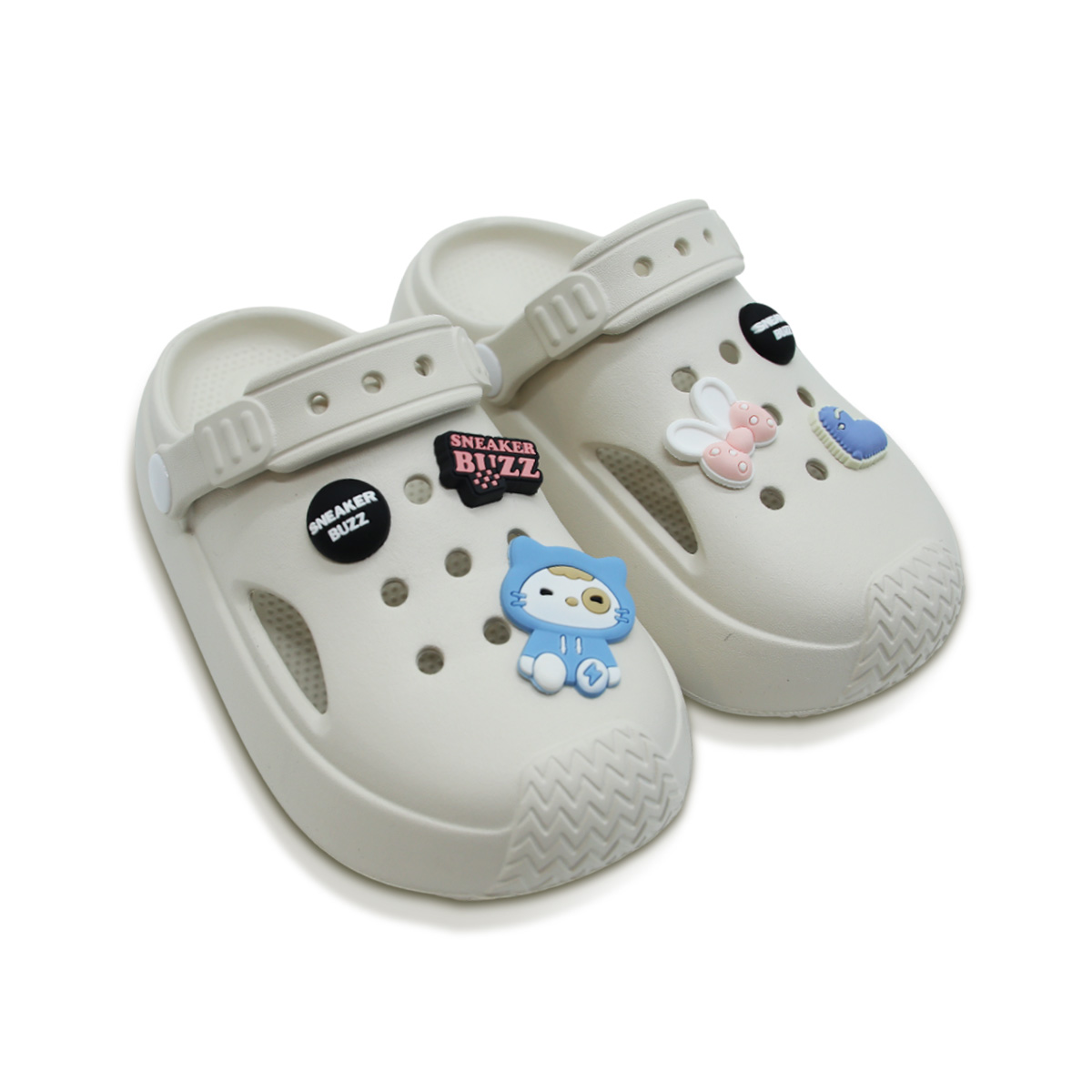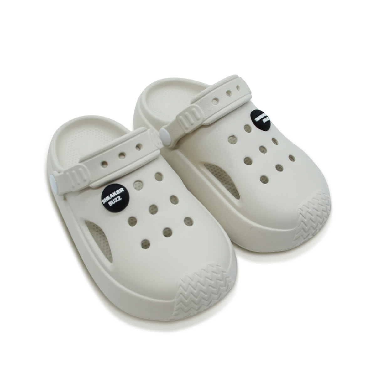 Đôi Clog với logo SNEAKER BUZZ được làm trên những chiếc nút tinh tế có thể tháo rời. Kết cấu phần quai hậu linh hoạt lên xuống và có thể tháo rời. Màu sắc đơn giản, vui tươi phù hợp với mọi lứa tuổi. Kết cấu tổng thể đôi Clog bầu bĩnh, đầy đặn, với phần mũi được bộc lại các đầu ngón chân và có lỗ thoáng khí.