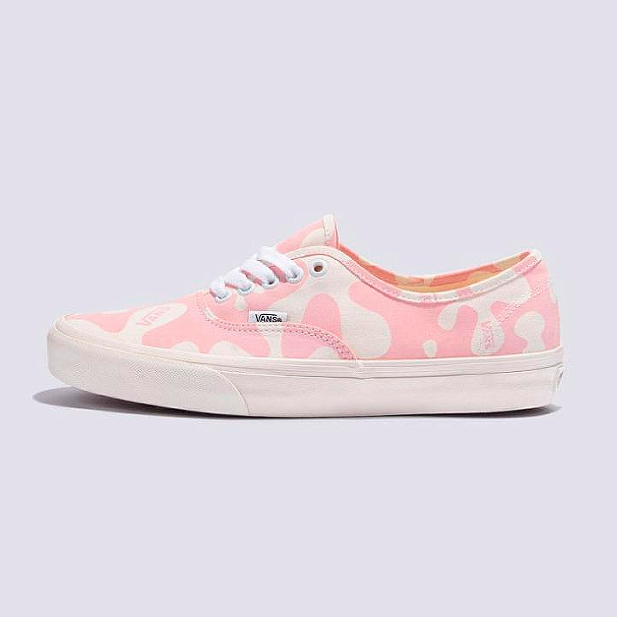 Authentic Blob Floral Pink mang upper 100% vải canvas bền chắc, thoáng khí – chất liệu đặc trưng của Vans. Trên nền trắng hồng, họa tiết Blob Floral xuất hiện với những mảng màu trừu tượng, mềm mại và nghệ thuật, tạo hiệu ứng thị giác mới lạ nhưng không quá cầu kỳ, khiến đôi giày vừa lạ mắt vừa dễ phối đồ.