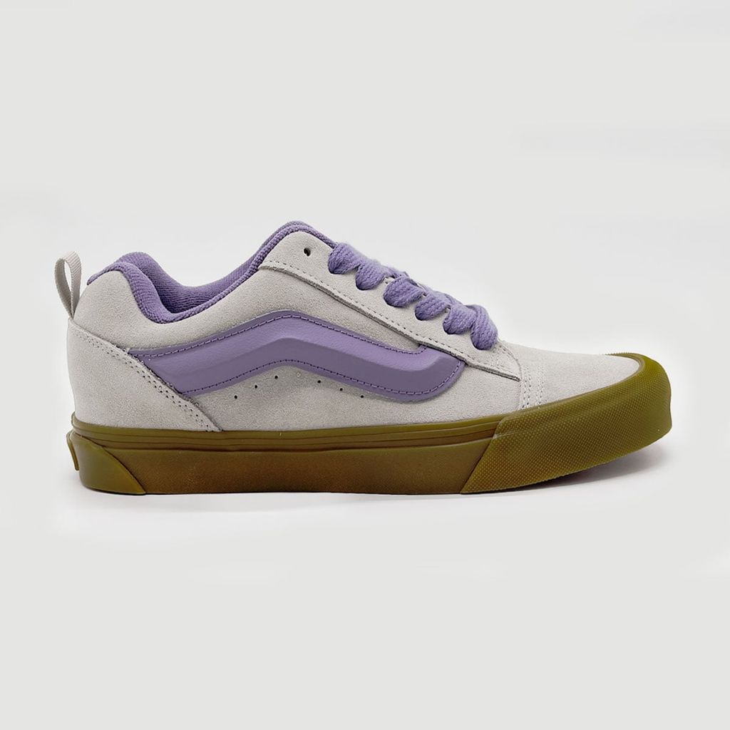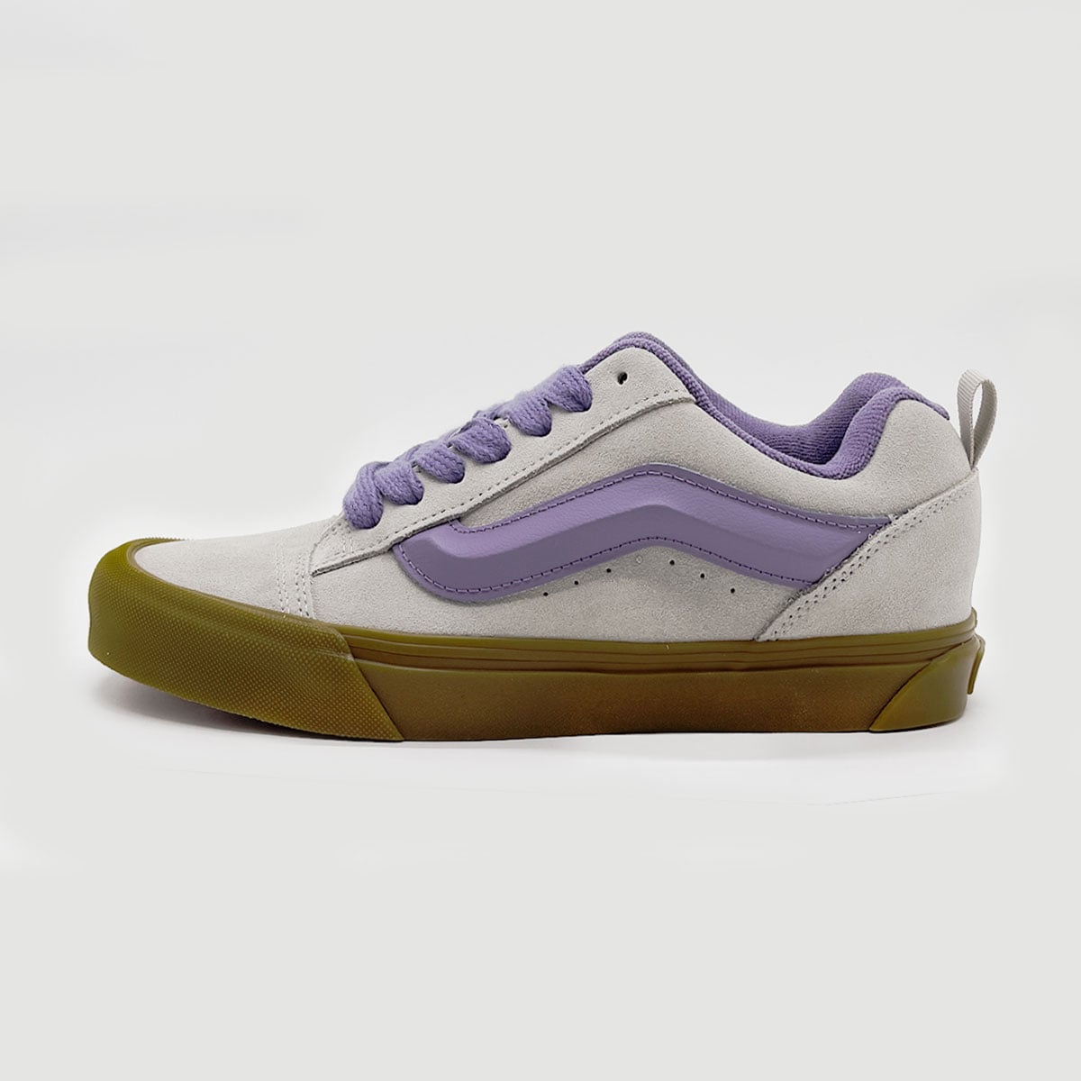 Vans Knu Skool - Gum Silver Lining là phiên bản hiện đại mang đậm dấu ấn của phong cách thập niên 90, nổi bật với phần lưỡi gà và cổ giày phồng, kết hợp dây giày chunky quá khổ táo bạo. Phom dáng cổ thấp dựa trên mẫu Old Skool cổ điển, được làm mới với dải logo Sidestripe™ đúc 3D đầy cá tính. Phần upper sử dụng chất liệu da lộn và vải canvas cao cấp, mang đến độ bền chắc chắn và cảm giác thoải mái khi mang.