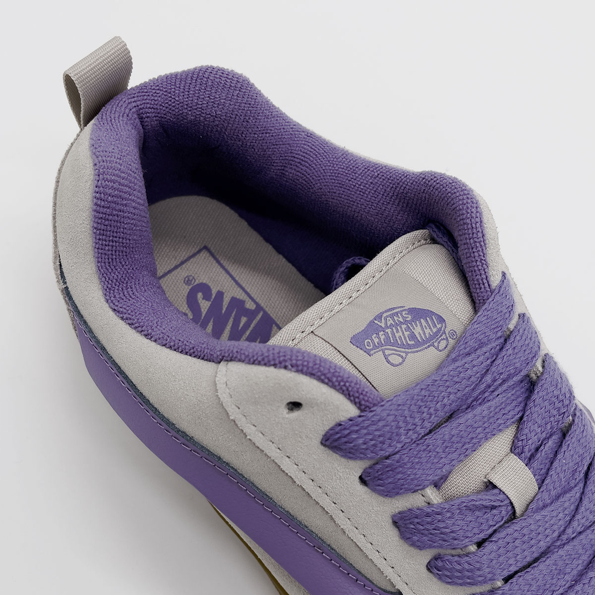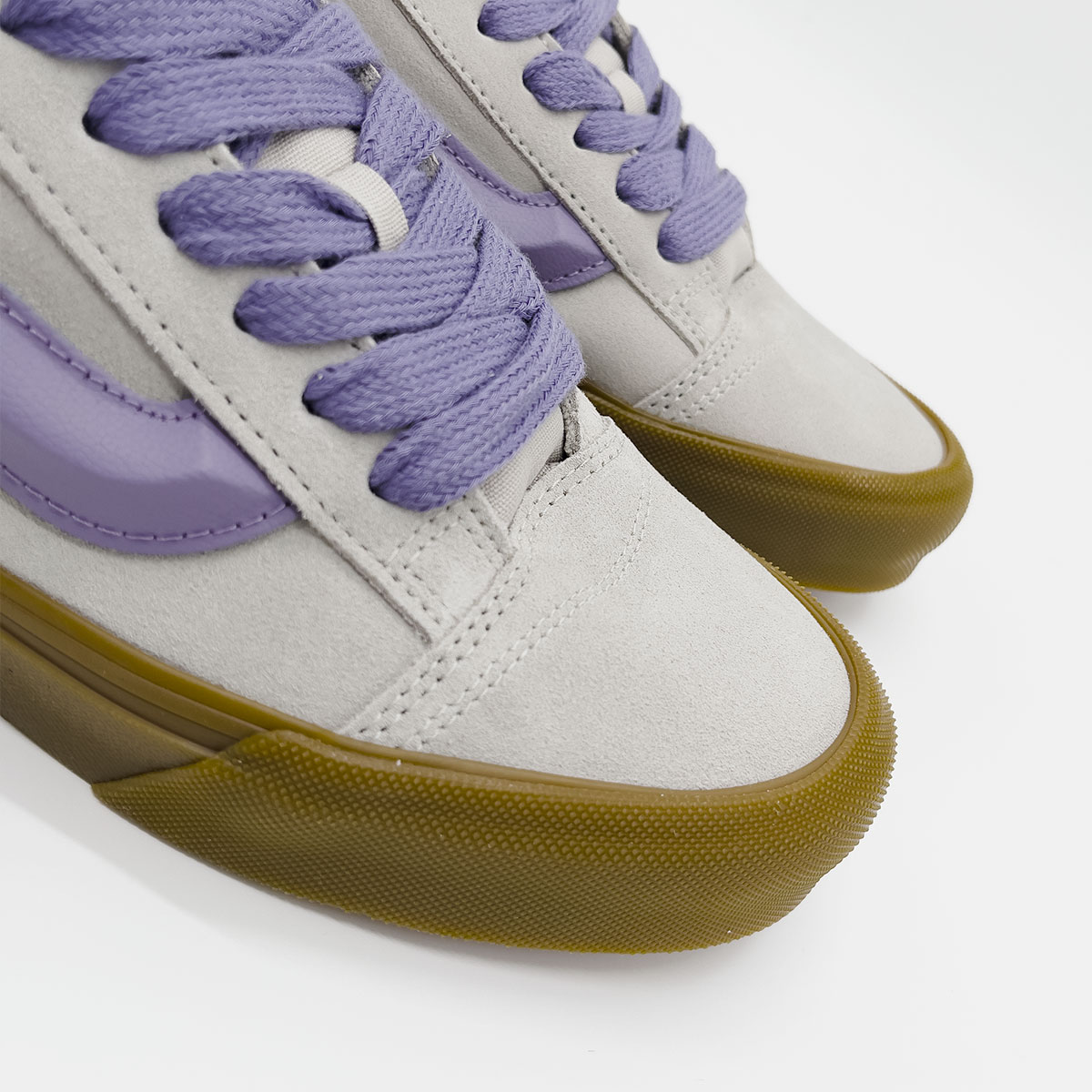 Phối màu Silver Lining nhẹ nhàng kết hợp cùng dải logo màu tím lavender tạo điểm nhấn nổi bật, đi kèm đế gum cao su cổ điển giúp hoàn thiện vẻ ngoài retro đầy cuốn hút. Thiết kế có thêm dây kéo gót tiện lợi giúp xỏ vào dễ dàng, trong khi đế ngoài cao su tổ ong đặc trưng của Vans mang lại độ bám tốt và tính linh hoạt cao – lý tưởng cho những ai muốn nổi bật với phong cách đường phố phá cách.