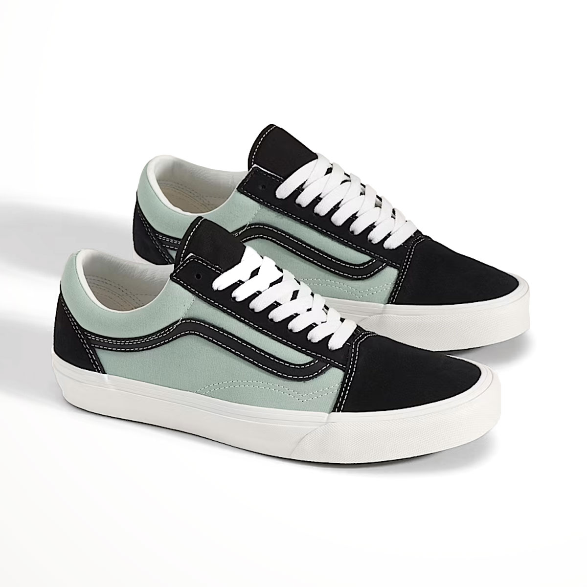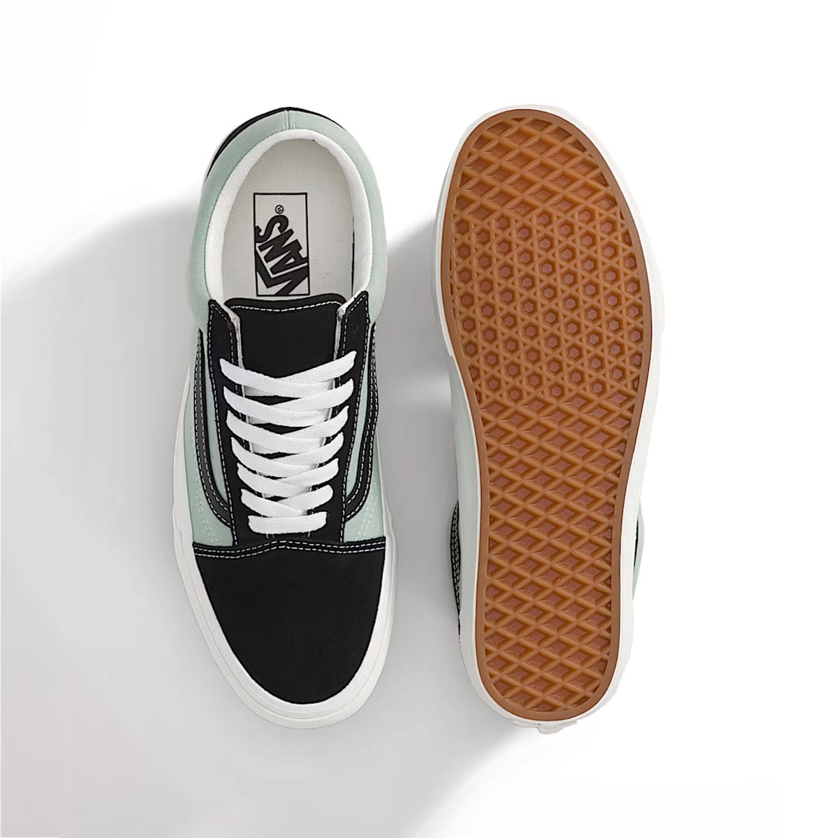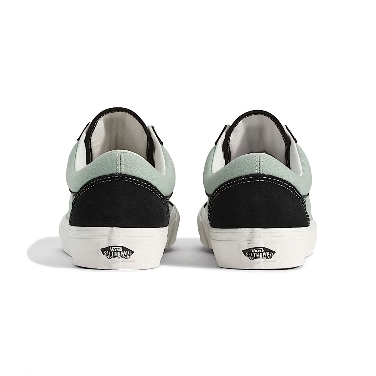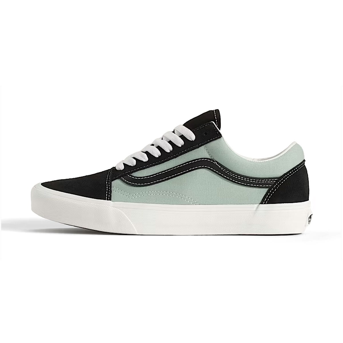 Vans Old Skool Basics – Gray Mist có thiết kế 2 tone màu rõ ràng, tạo cảm giác gọn và dễ nhìn. Phần thân giày chính màu Gray Mist (xám xanh nhạt) làm từ canvas, mang lại tổng thể nhẹ và sáng. Các mảng màu đen được đặt ở mũi giày, gót giày và viền dải Sidestripe™, giúp tăng độ tương phản và giữ form giày trông chắc chắn hơn.
