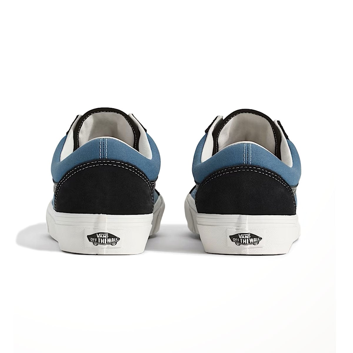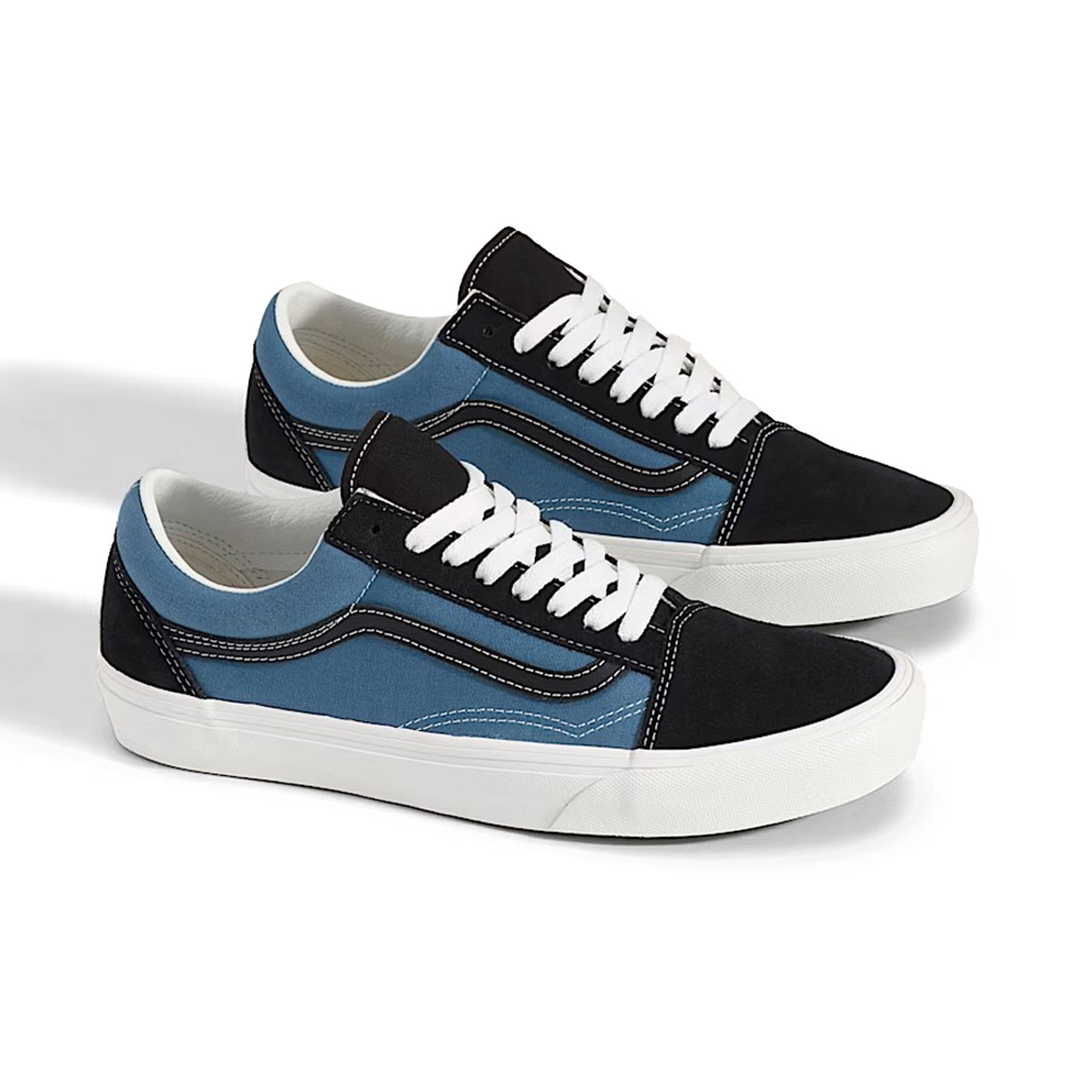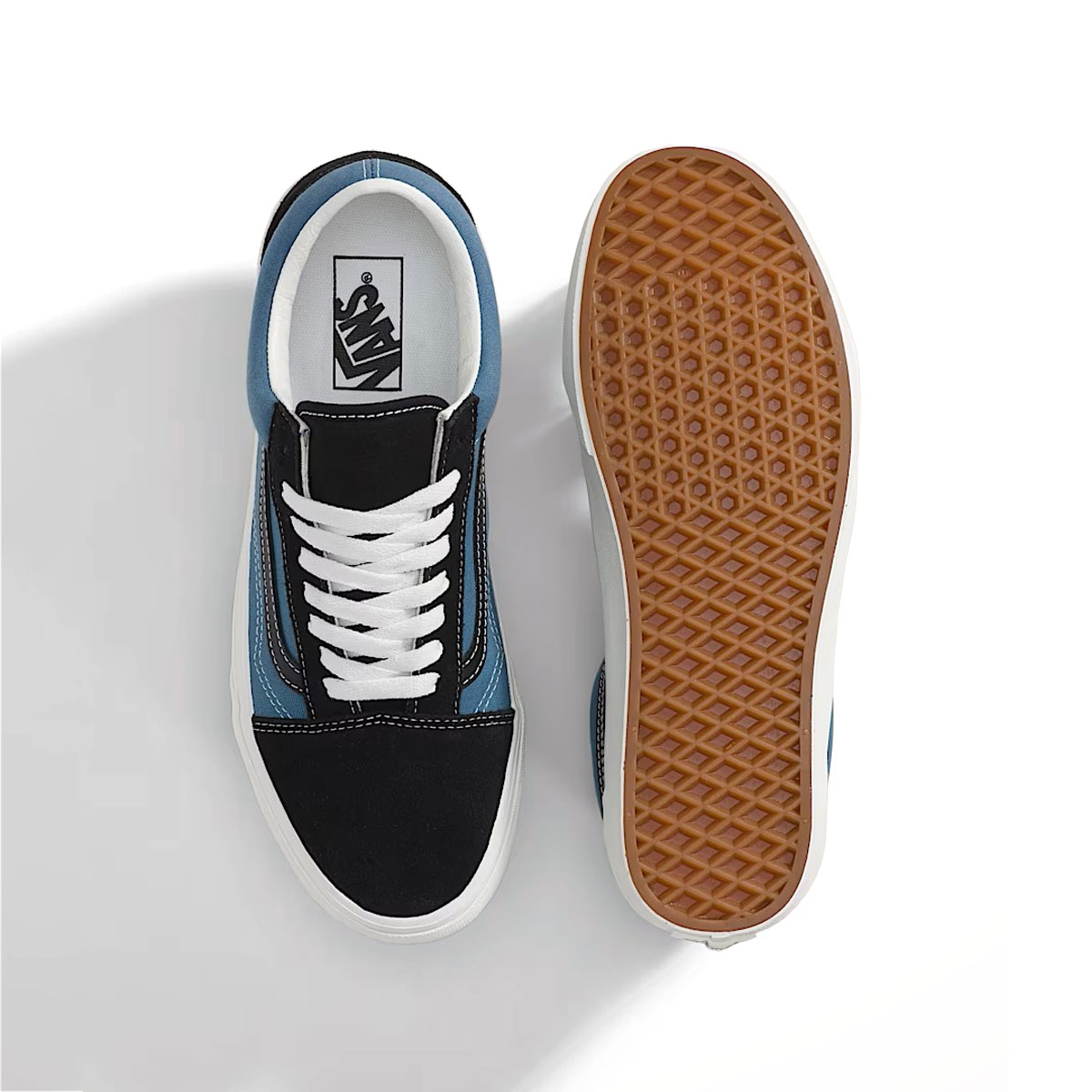 Vans Old Skool Basics Navy/ Black có thiết kế 2 tone màu rõ ràng, tạo cảm giác gọn và dễ nhìn. Phần thân giày chính màu xanh dương đậm kết hợp với sắc đen được đặt ở mũi giày, gót giày và viền dải Sidestripe™, giúp tăng độ tương phản và giữ form giày trông chắc chắn hơn.