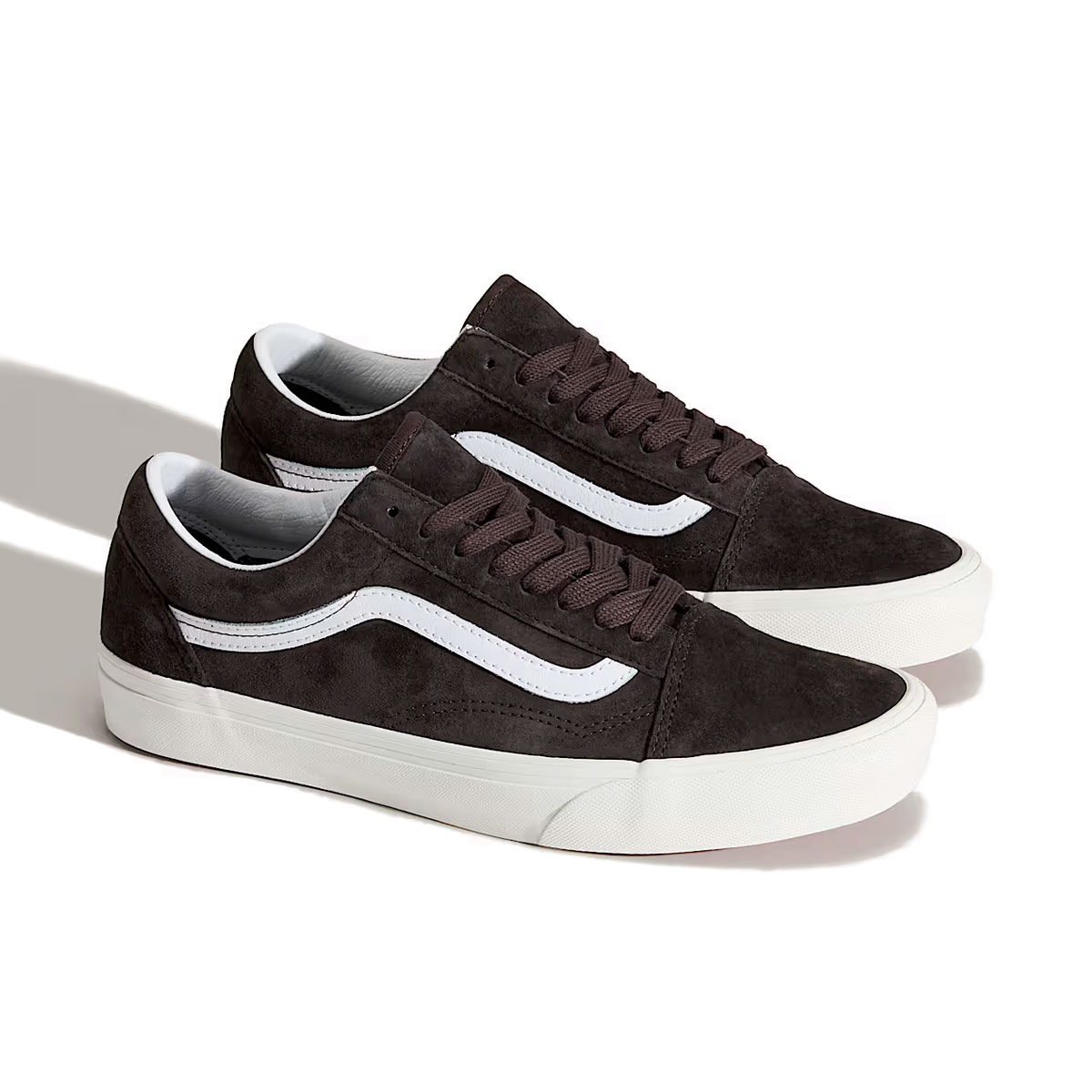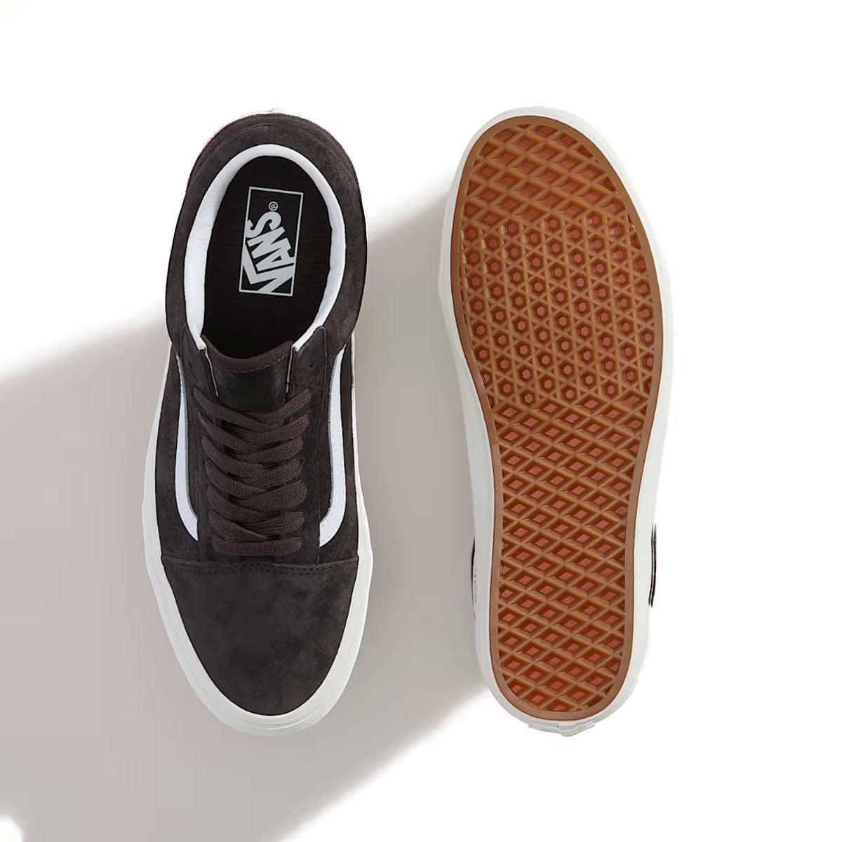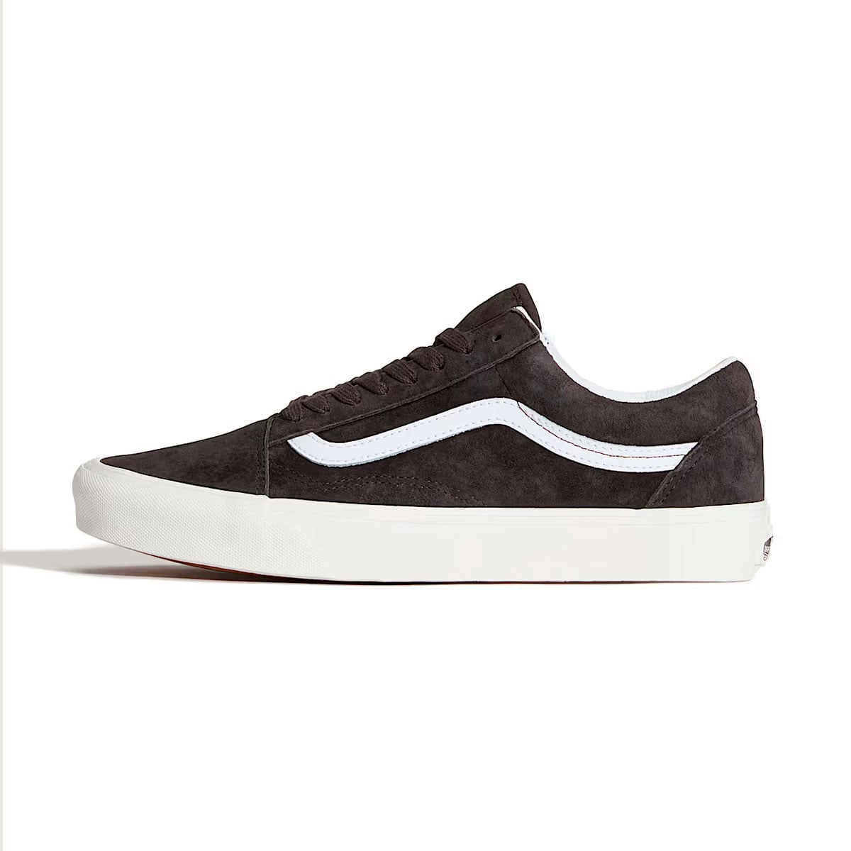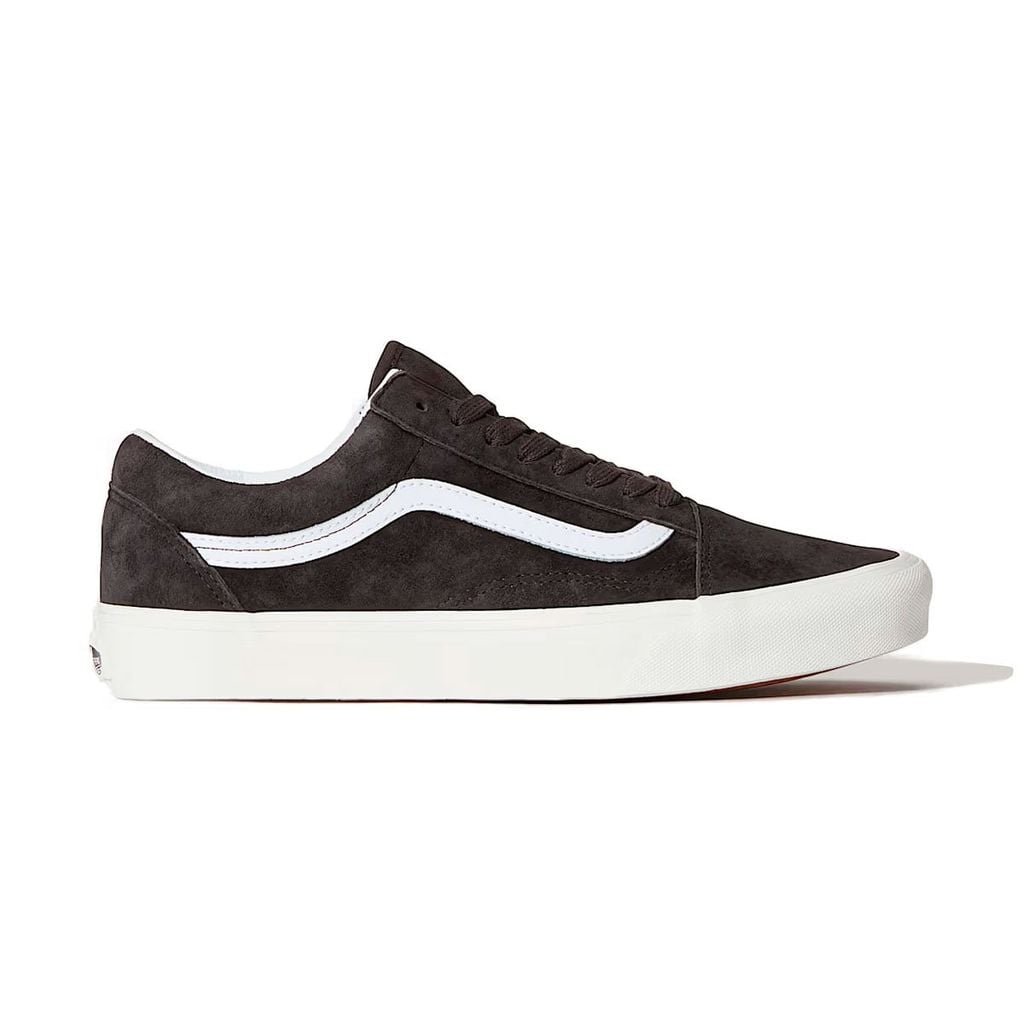 Thiết kế vẫn giữ phom cổ thấp đặc trưng của Old Skool, với dải logo Sidestripe™ màu trắng chạy dọc thân giày, tạo điểm tương phản rõ nét trên nền da lộn sẫm màu. Các mảng panel được cắt may gọn gàng, đường chỉ chắc chắn giúp form giày đứng và ôm chân ổn định. Phần cổ giày có đệm nhẹ, hỗ trợ tốt khi mang trong thời gian dài. Phần đế giữa và thành giày bằng cao su trắng mang lại sự cân bằng cho thiết kế, đồng thời giữ nguyên kết cấu lưu hóa truyền thống của Vans. Đế ngoài waffle đặc trưng tiếp tục đảm bảo độ bám và độ ổn định, đúng tinh thần của dòng Old Skool từ năm 1977.