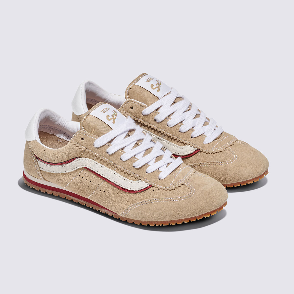 Lấy cảm hứng từ những đôi giày chạy bộ và giày đế bằng thập niên 80, Vans Super Lowpro tái hiện tinh thần “thấp – nhẹ – linh hoạt” với phối màu nâu sữa nhạt trong đôi giày có sắc màu vintage hơn và nổi bật. Dáng giày siêu thấp được phát triển từ mẫu Serio Style 84, mang đến cảm giác gần sát mặt đất, nhưng vẫn đủ đệm để thoải mái di chuyển mỗi ngày.