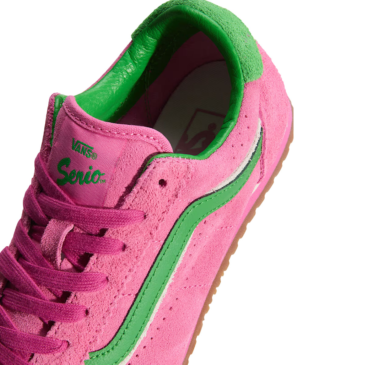 Dấu ấn nhận diện của dòng Super LowPro nằm ở dải SideStripe™ phối màu tương phản chạy dọc thân giày, đi cùng tag “Serio” Heritage trên lưỡi gà như một chi tiết đặc trưng. Bên dưới, phom đế thấp hỗ trợ chuyển động linh hoạt, trong khi đế ngoài cao su hoạ tiết tổ ong đặc trưng của Vans giúp tăng độ bám trên nhiều bề mặt.
