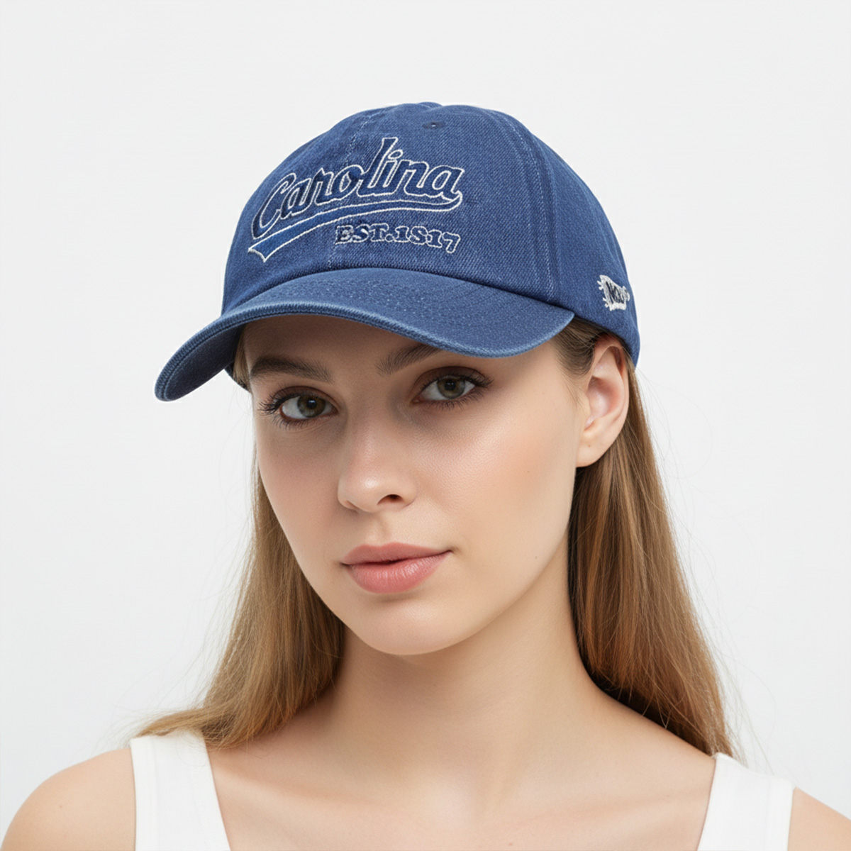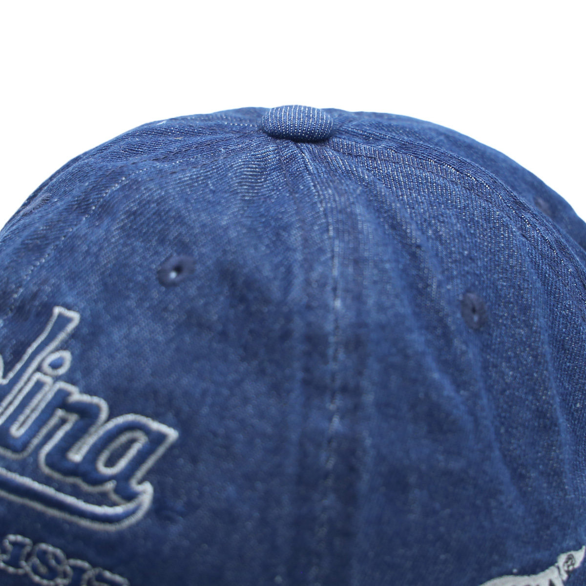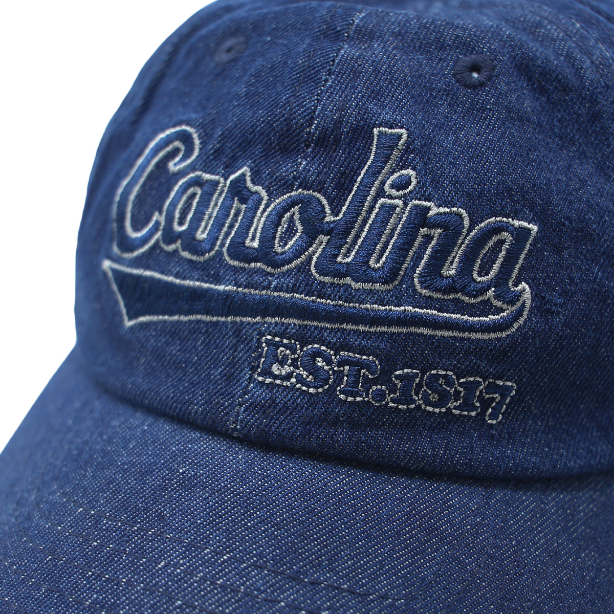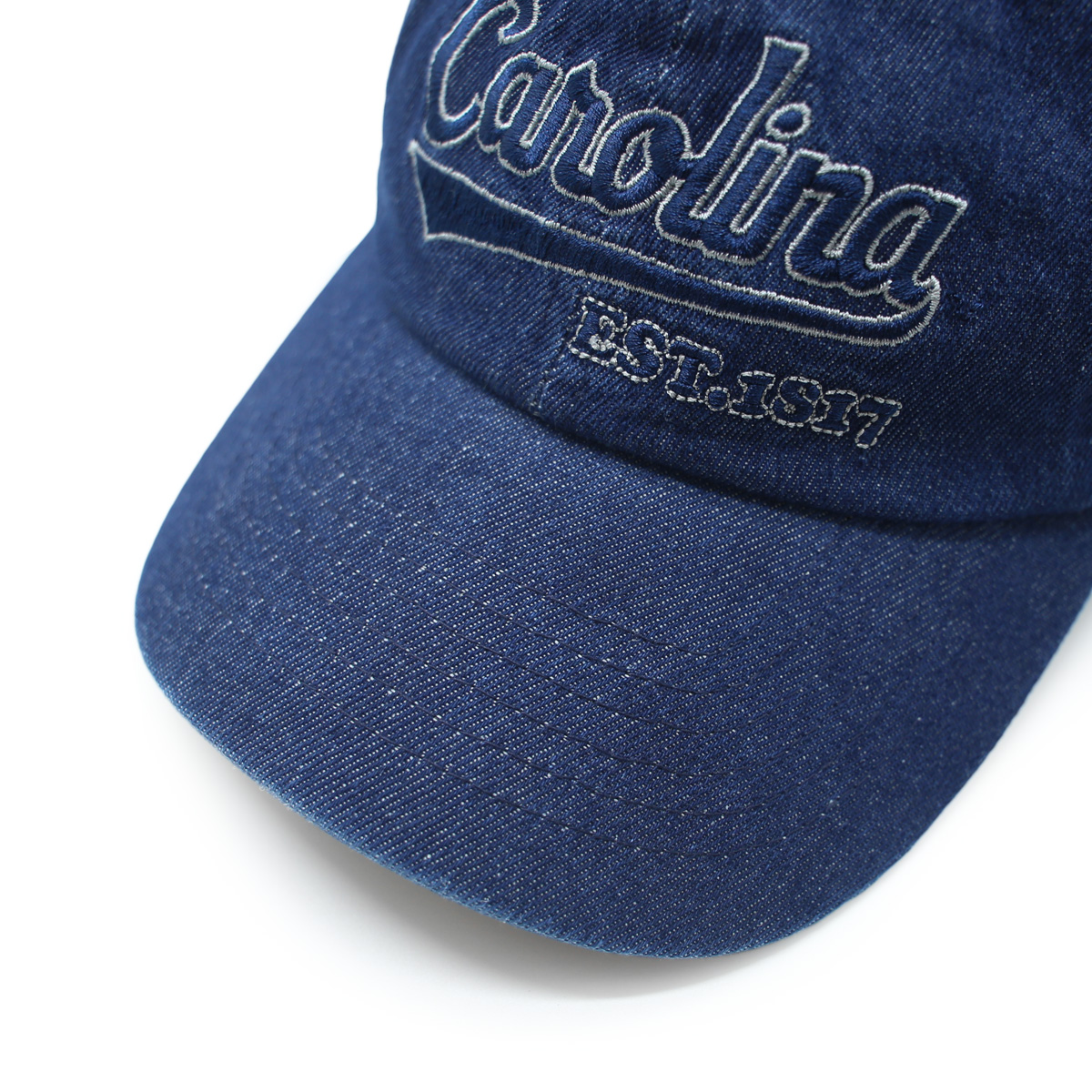 Chiếc nón denim xanh đậm mang phong cách cổ điển kết hợp với chất liệu denim bụi bặm, tạo điểm nhấn cá tính cho mọi outfit. Logo thêu “Carolina EST.1817” phía trước gợi nhớ tinh thần thể thao học đường Mỹ, trong khi chi tiết logo cá mập bên hông mang lại nét độc đáo riêng biệt.