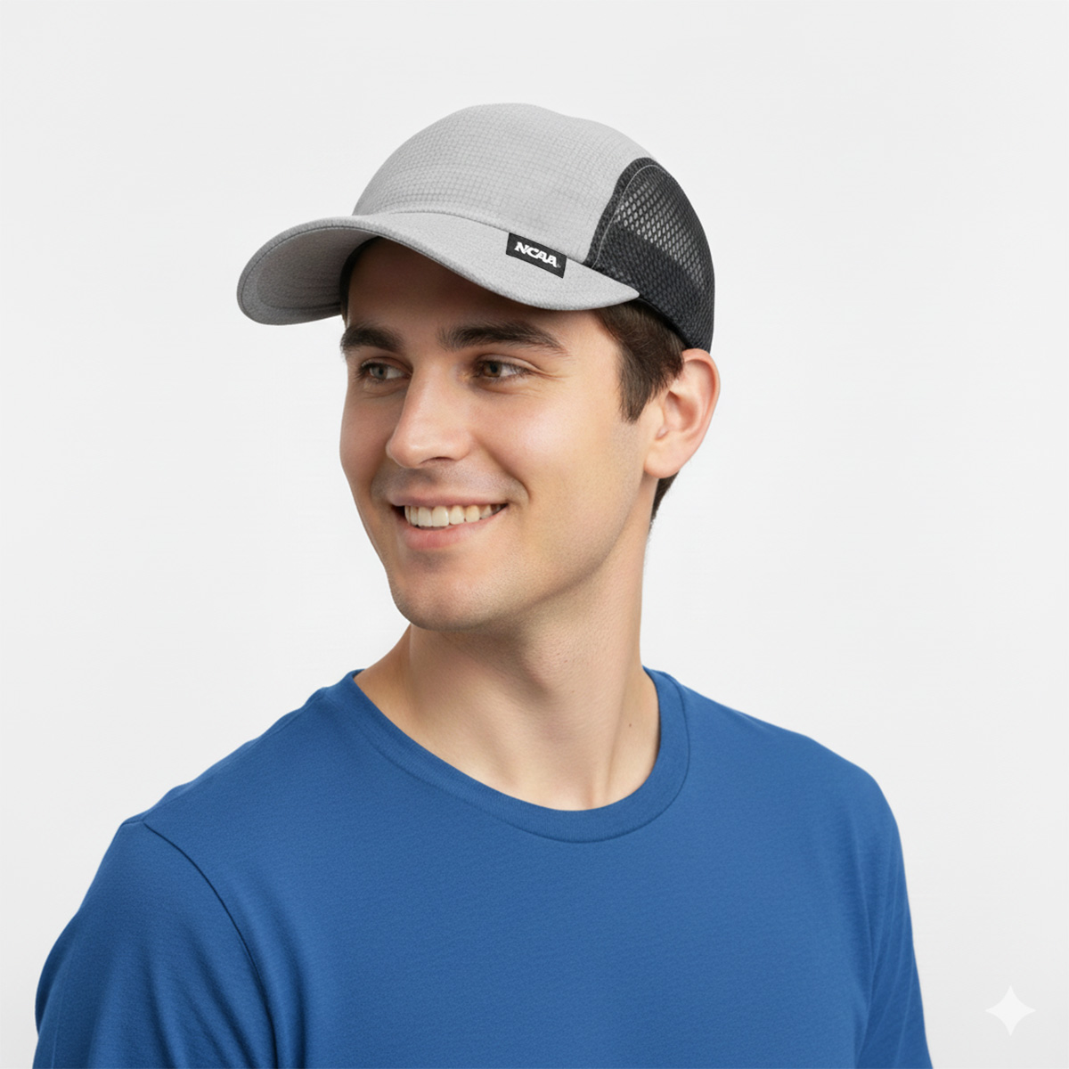 - Thiết kế được nhấn nhẹ bằng tag logo NCAA nhỏ gọn ở viền lưỡi trai, không phô trương nhưng đủ nhận diện thương hiệu. Tổng thể mang tinh thần thể thao tối giản hiện đại, dễ phối với outfit activewear, casual hoặc streetwear năng động.