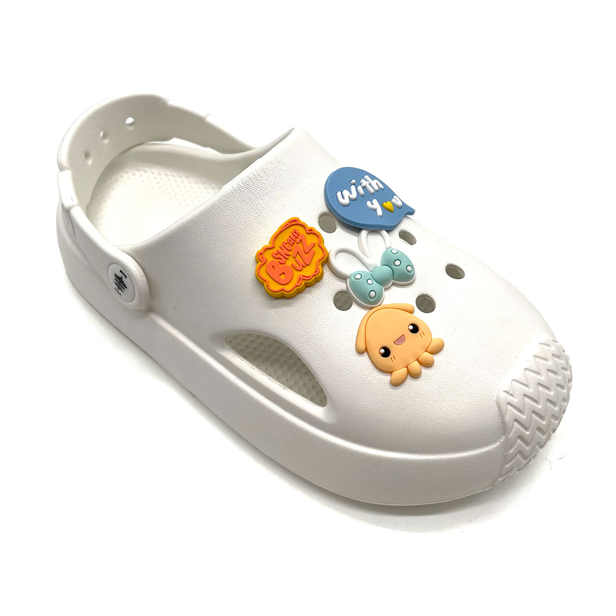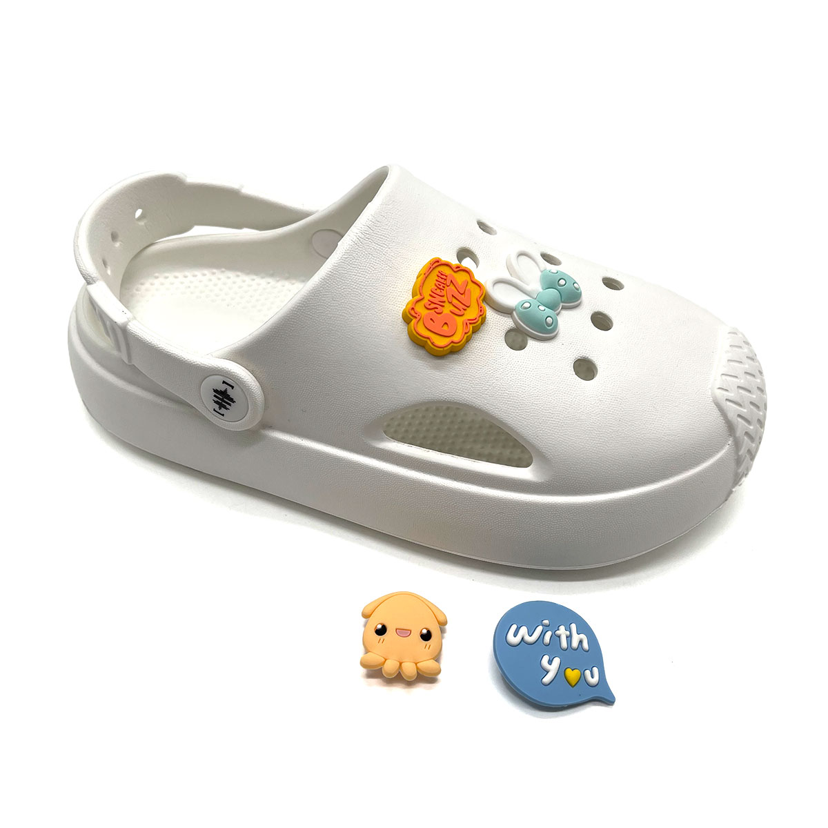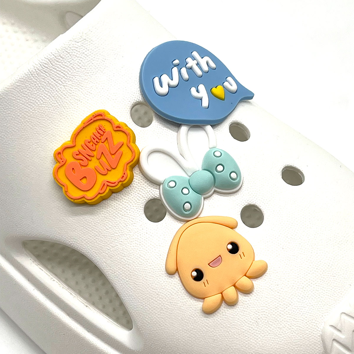 Phụ kiện Charm bao gồm 3 charm với màu sắc tươi vui, hình dáng ngẫu nhiên, cùng một logo Sneaker Buzz, thiết kế trang trí cho dòng Clog Famility hoặc các dòng dép lỗ tương tự khác. Với 8 lỗ trên mỗi chiếc giày, bạn có thể tùy ý sáng tạo và biến tấu phong cách. Bên cạnh đó, bộ charm được đóng gói trong bao bì hologram nổi bật và ấn tượng.