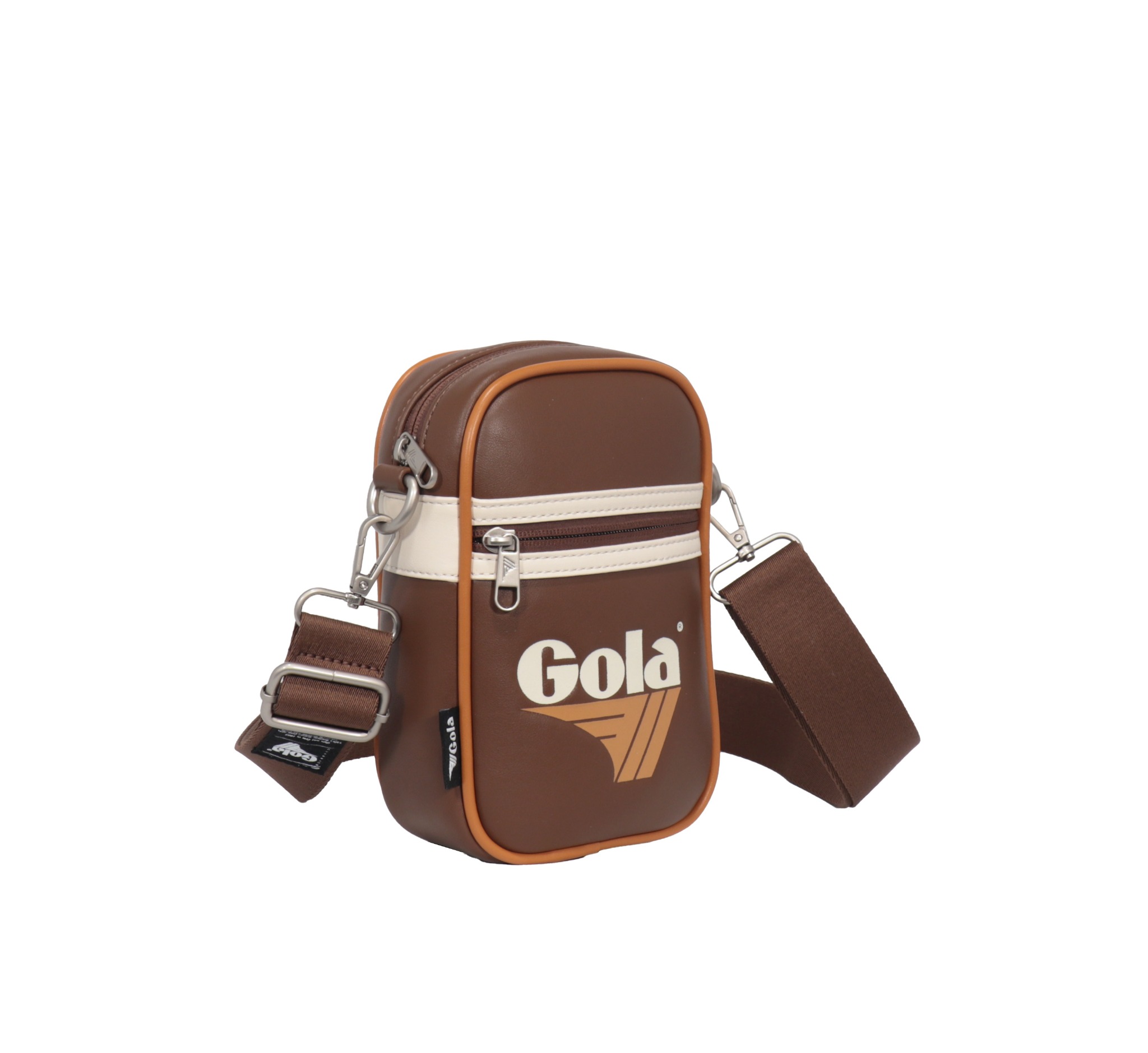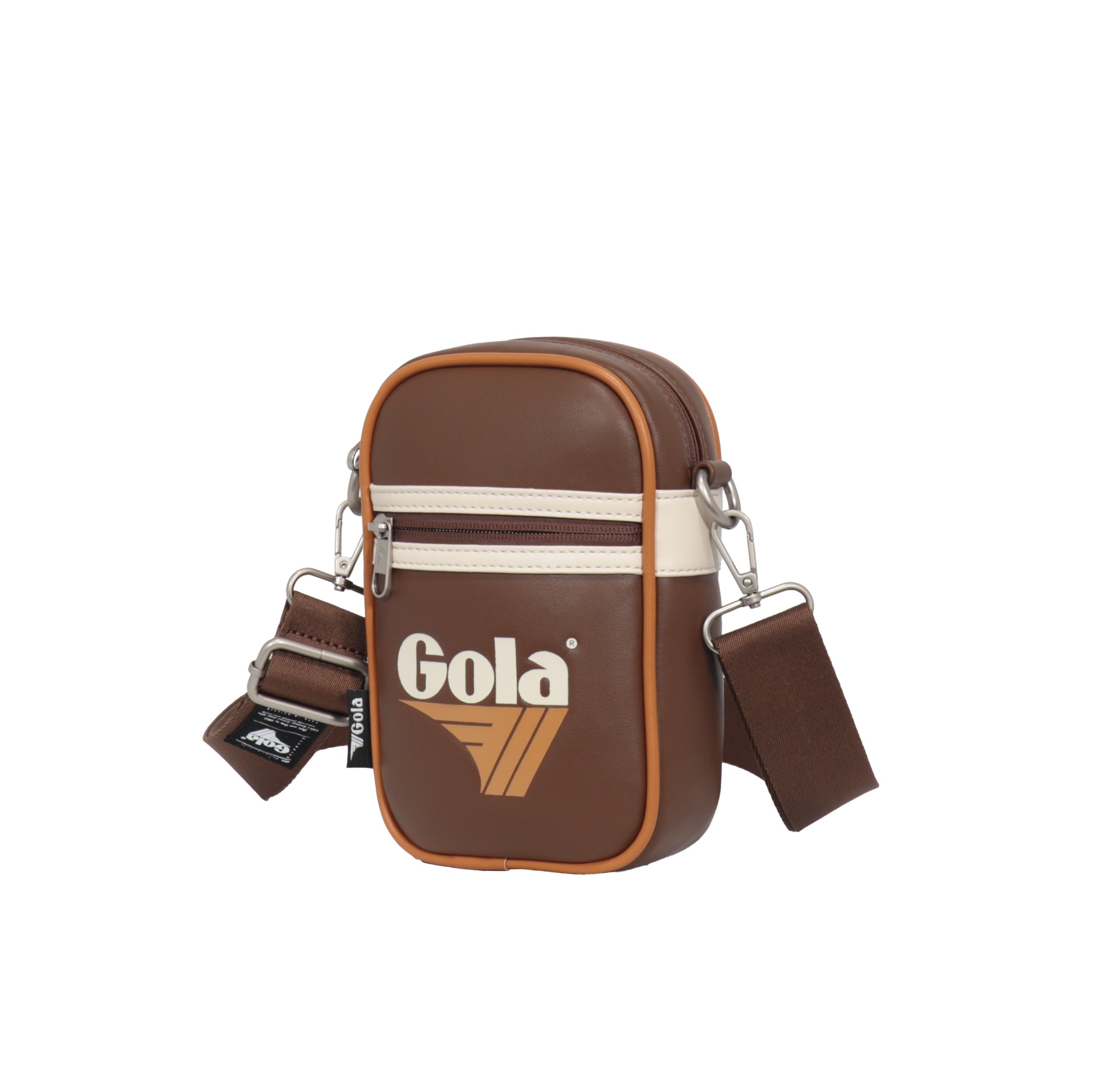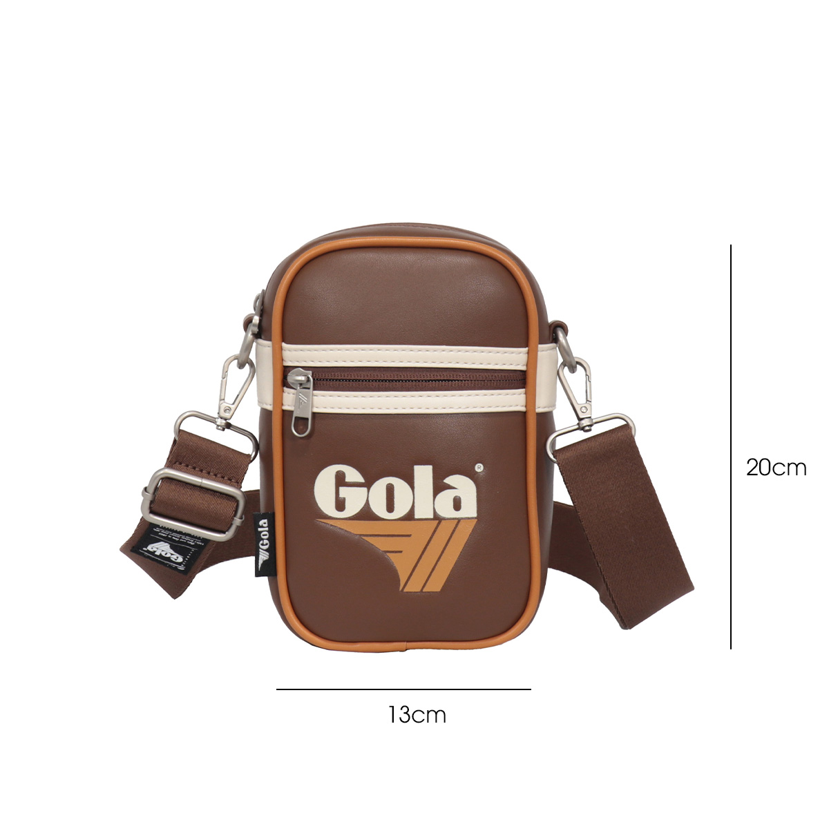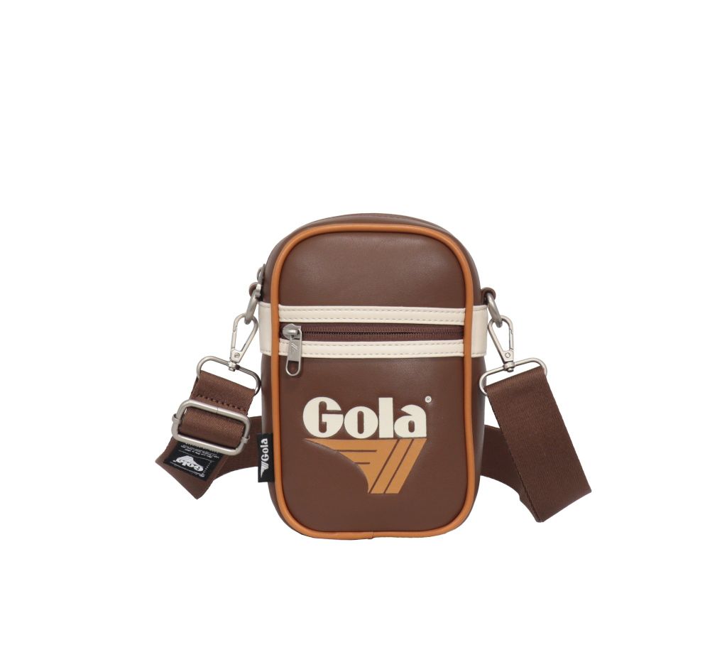 Túi đeo chéo nhỏ Gola nổi bật với thiết kế hình hộp đứng mang đậm phong cách retro thể thao cùng logo Gola in lớn ở mặt trước, tạo điểm nhấn cá tính và khác biệt.