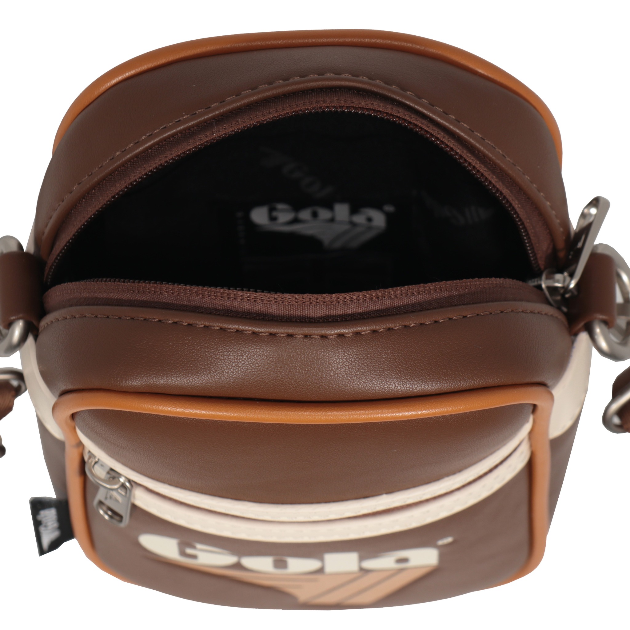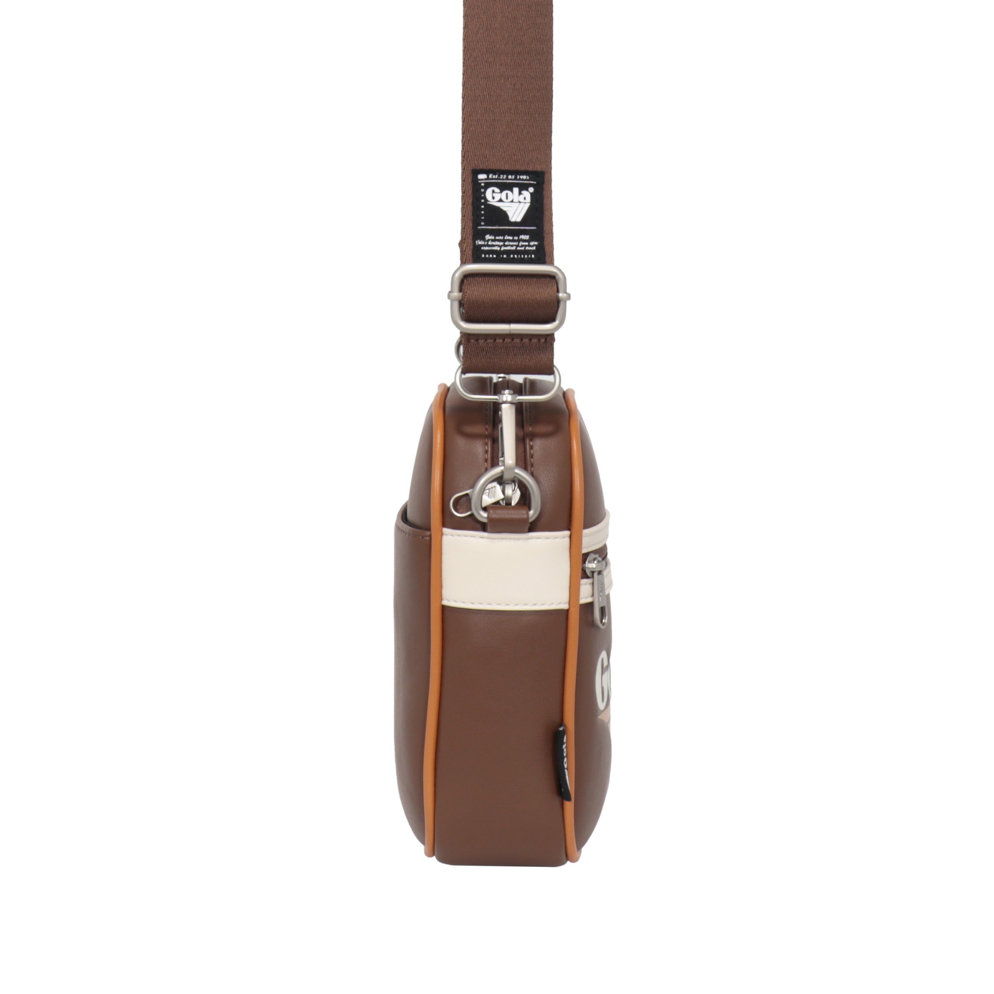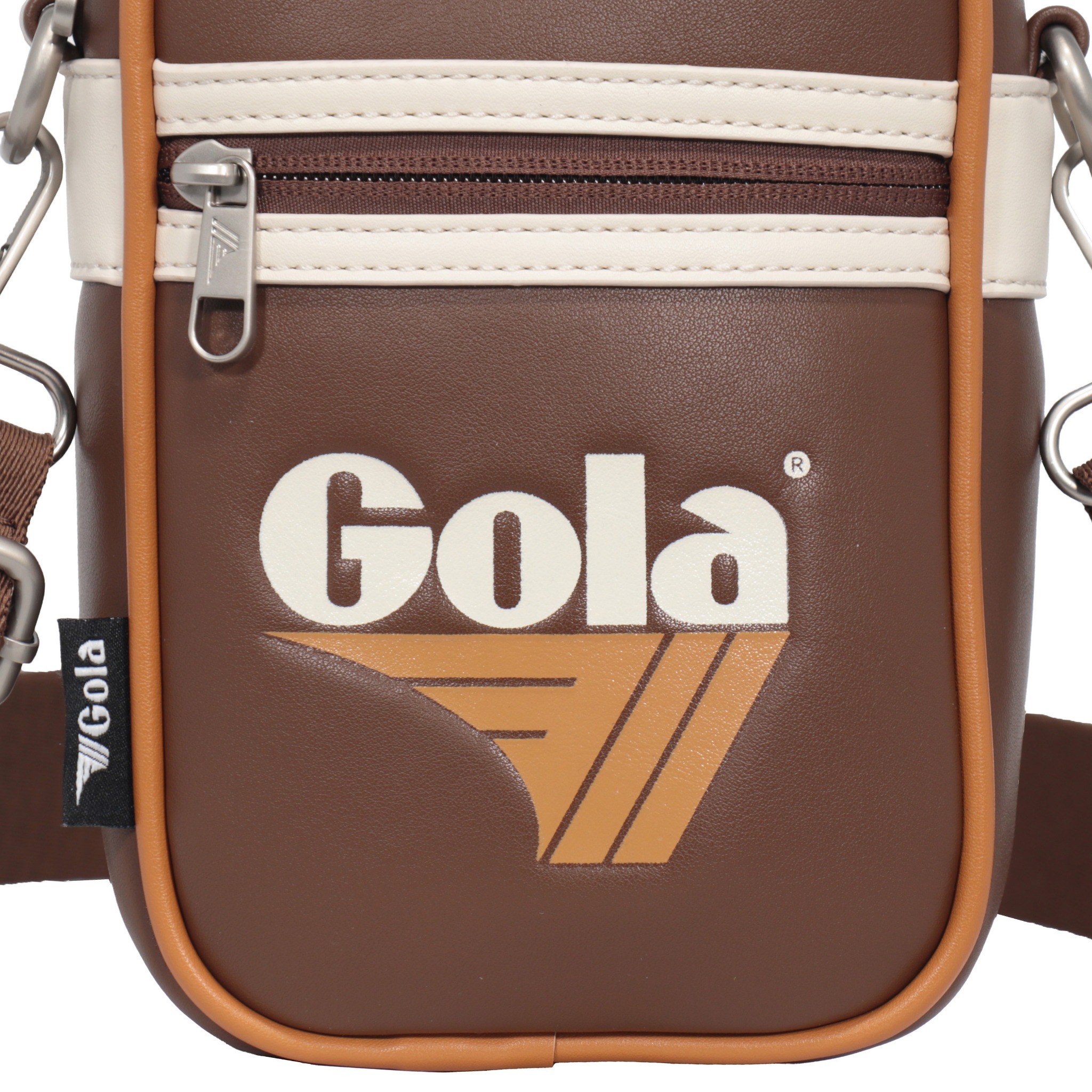 Túi đeo chéo nhỏ Gola nổi bật với thiết kế hình hộp đứng mang đậm phong cách retro thể thao cùng logo Gola in lớn ở mặt trước, tạo điểm nhấn cá tính và khác biệt.