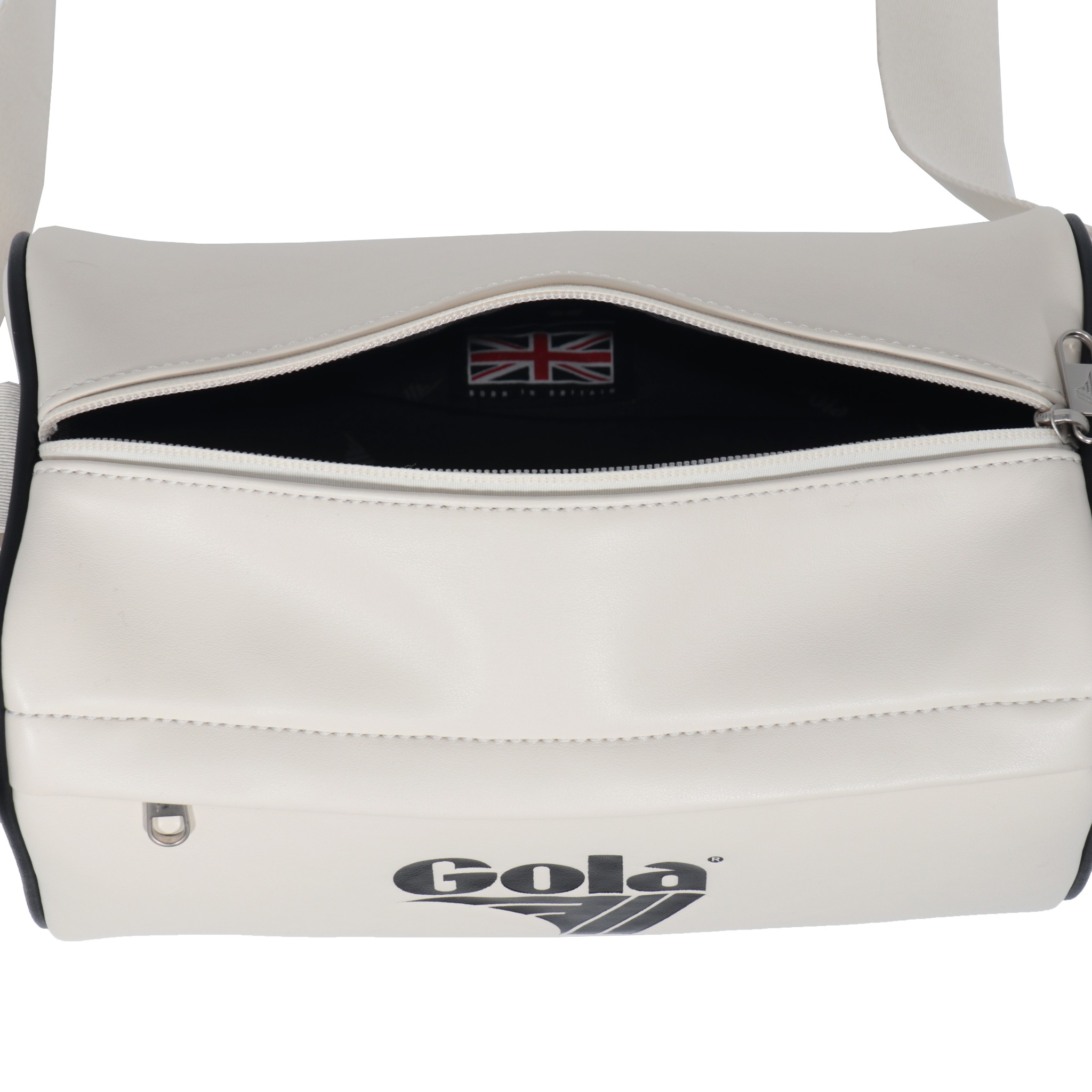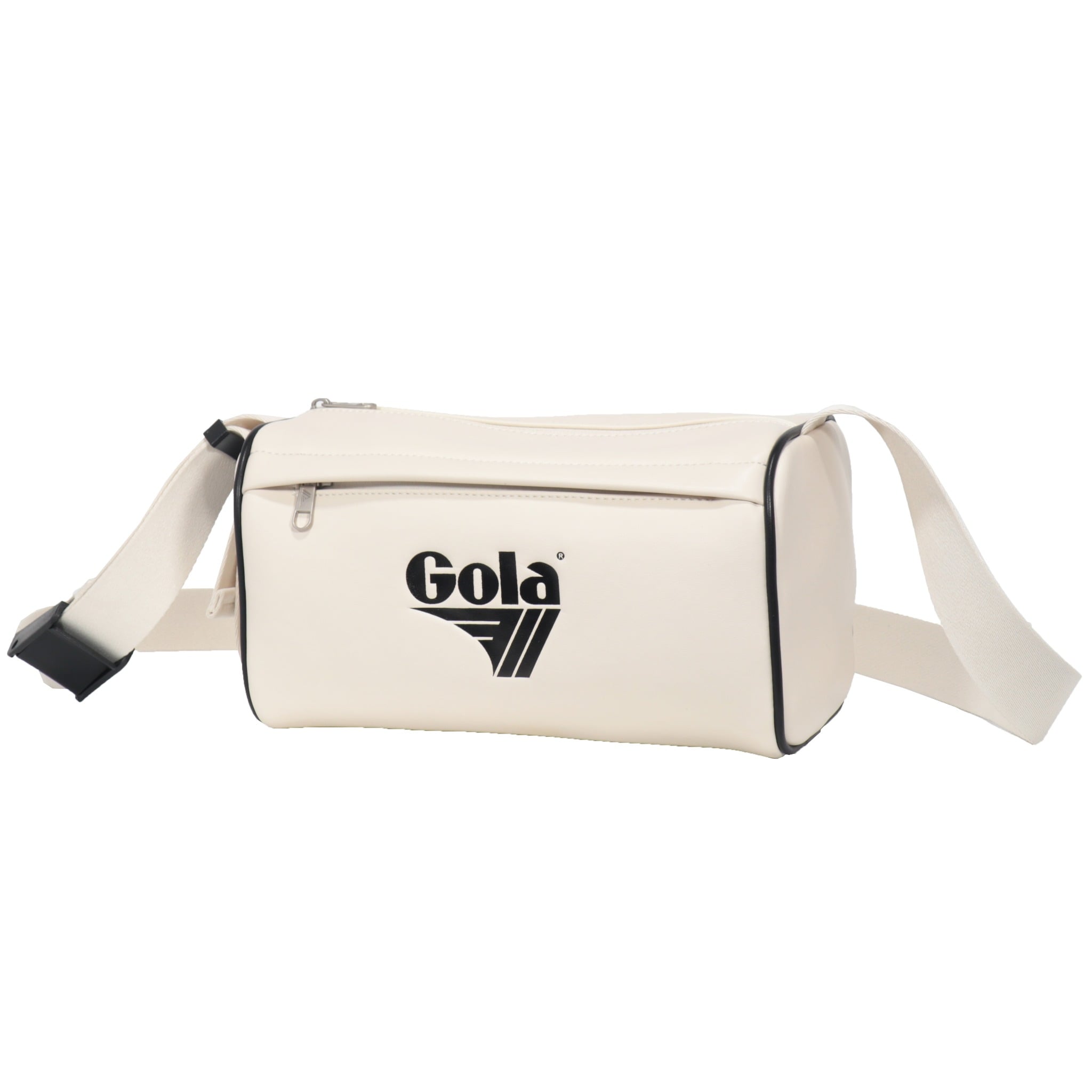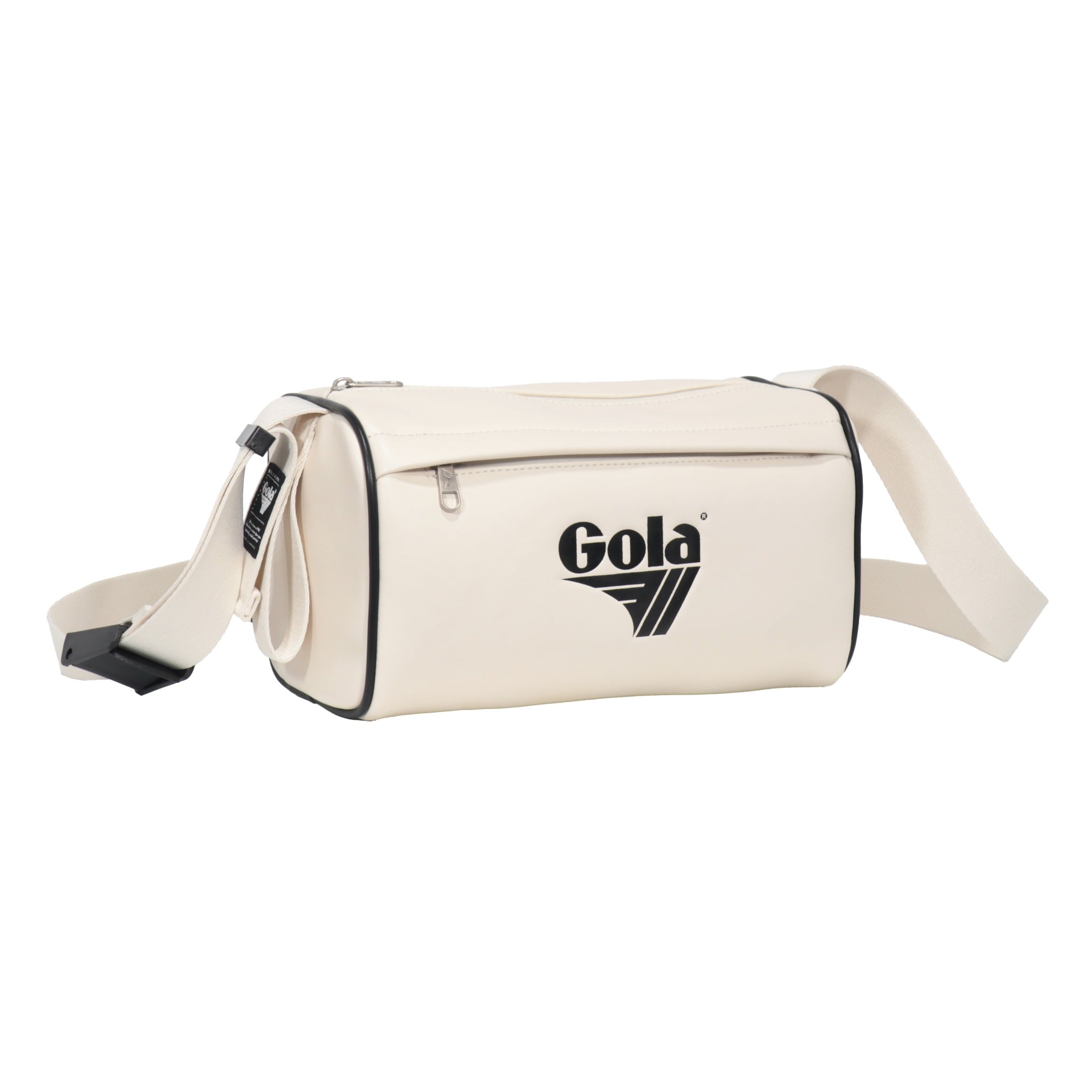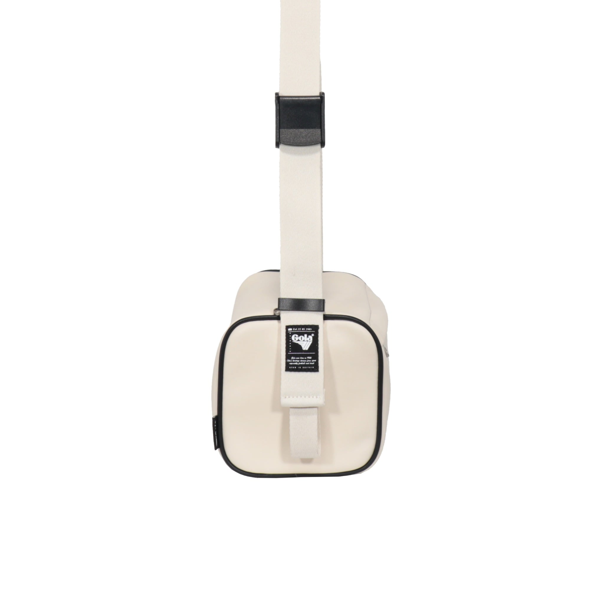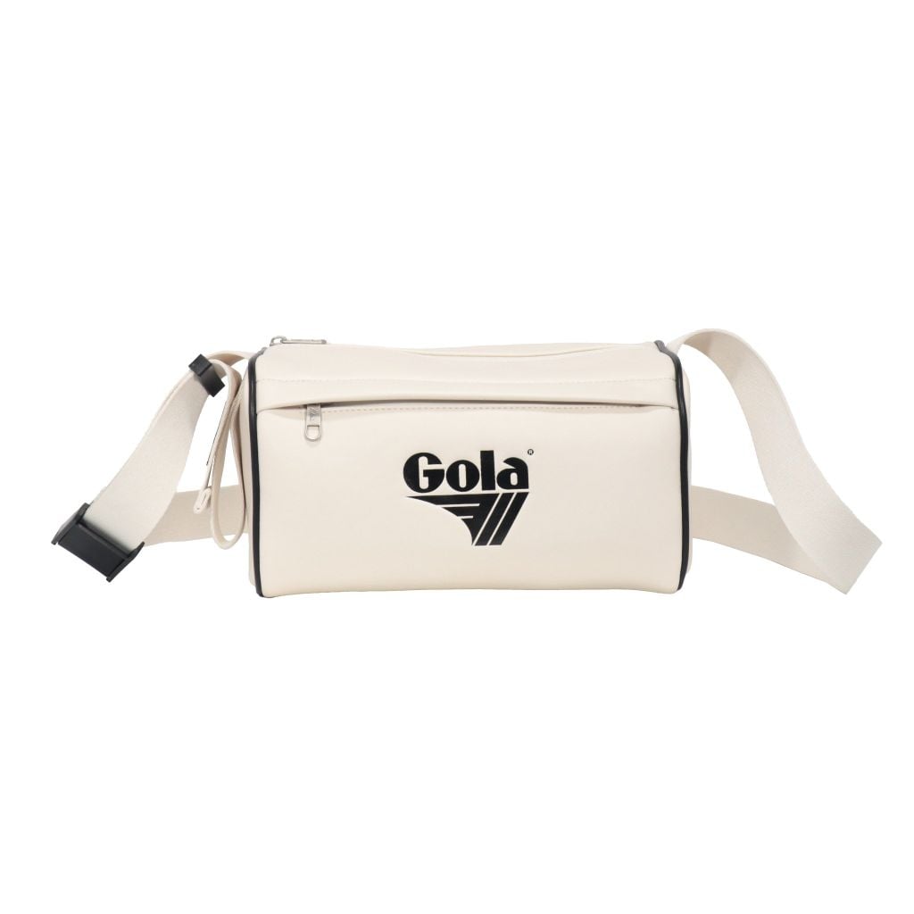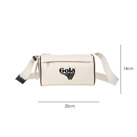 Chiếc túi đeo vai Gola mang kiểu dáng chữ nhật ngang nhỏ gọn, dễ mang theo hằng ngày. Mặt trước in logo Gola kích thước lớn, lệch về bên trái, tạo điểm nhấn cá tính và đậm chất retro.