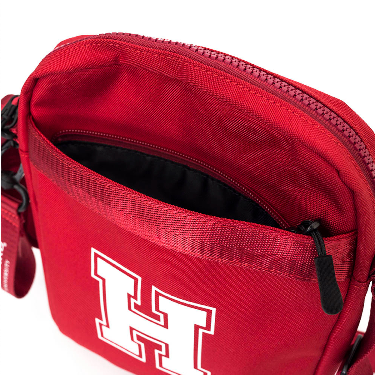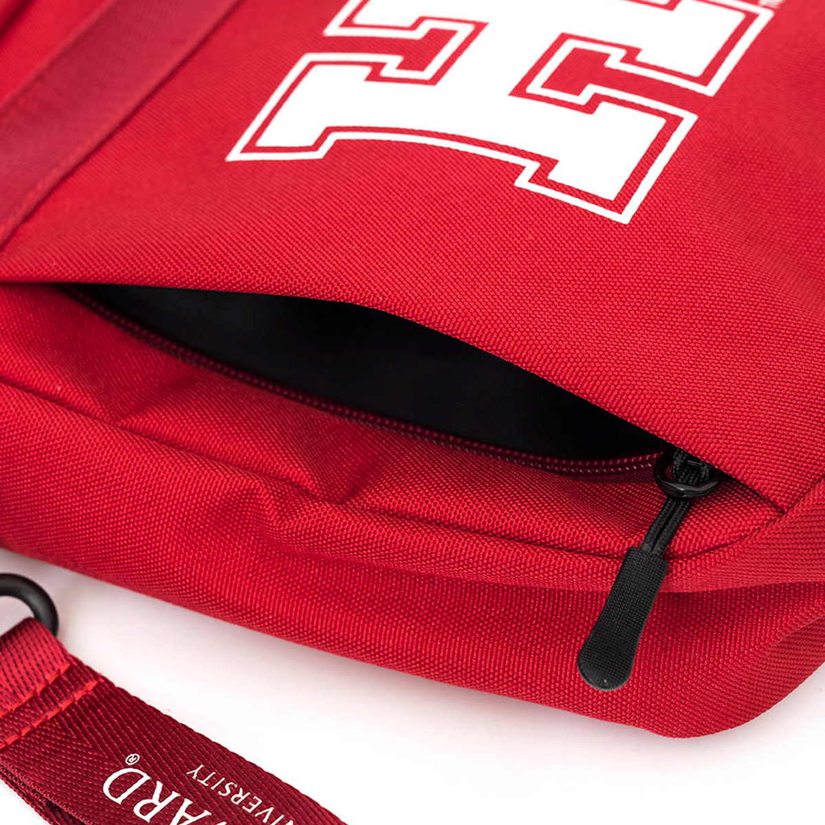 Túi Đeo Chéo NCAA Shoulder Bag - Thể hiện đẳng cấp và niềm tự hào với túi đeo chéo NCAA Shoulder Bag phiên bản màu đỏ, lấy cảm hứng từ trường đại học danh giá Harvard. Túi sở hữu gam màu đỏ đặc trưng, nổi bật với logo chữ ""H"" được in tinh tế ở mặt trước, tạo điểm nhấn sang trọng và đậm chất biểu tượng.
