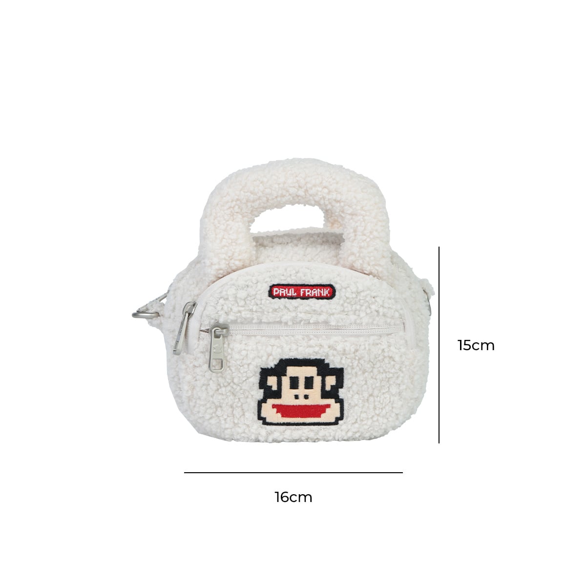 Túi Paul Frank được làm từ chất liệu lông cừu cao cấp mềm mịn, mang lại cảm giác dễ chịu ngay từ lần chạm đầu tiên. Thiết kế nhỏ gọn, dễ thương, kết hợp họa tiết Paul Frank phong cách pixel cá tính, giúp túi dễ dàng phối hợp với nhiều phong cách trang phục khác nhau.